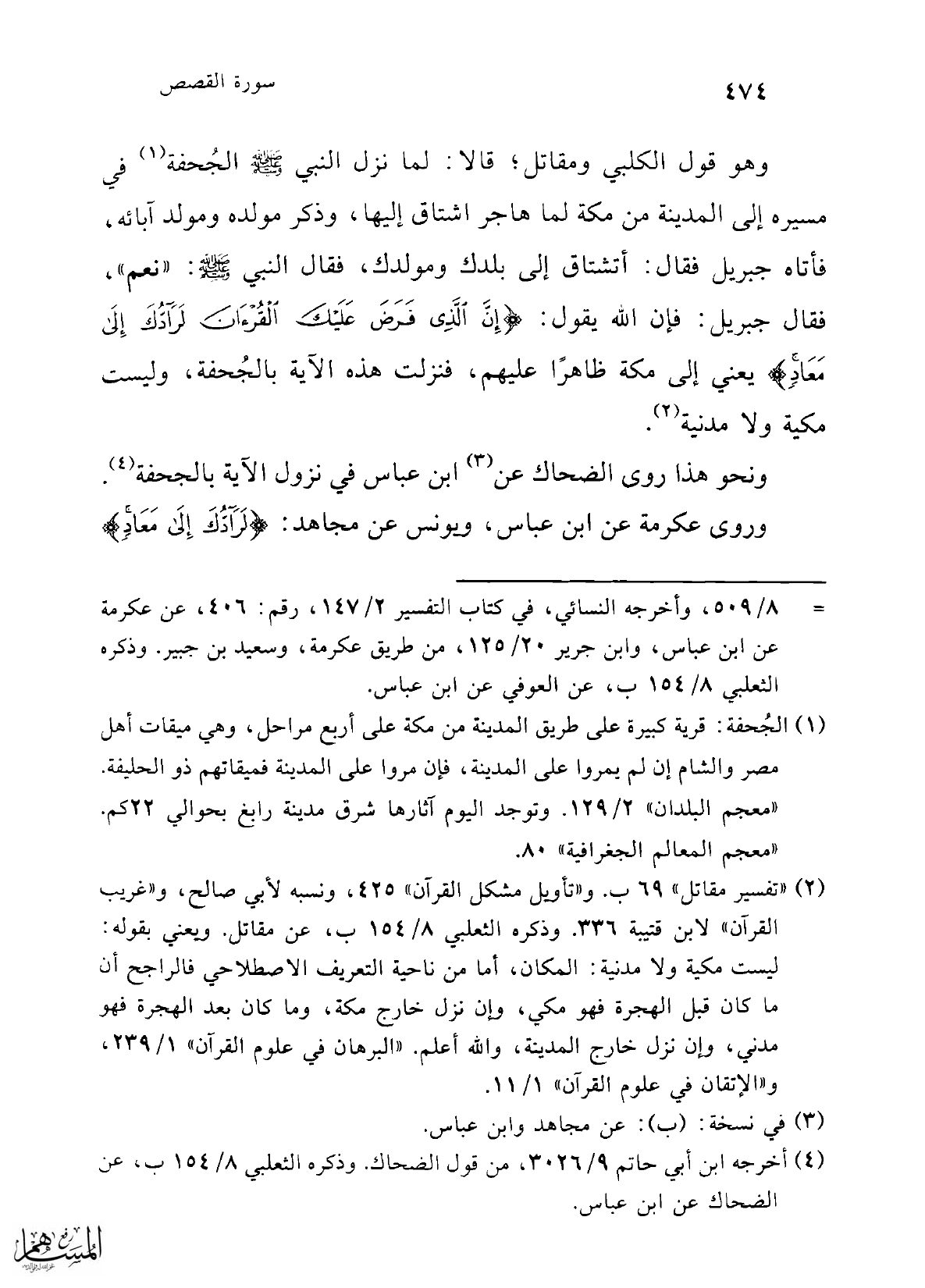 (¬2) "تفسير مقاتل" 69 ب. و"تأويل مشكل القرآن" 425، ونسبه لأبي صالح، و"غريب القرآن" لابن قتيبة 336. وذكره الثعلبي 8/ 154 ب، عن مقاتل. ويعني بقوله: ليست مكية ولا مدنية: المكان، أما من ناحية التعريف الاصطلاحي فالراجح أن ما كان قبل الهجرة فهو مكي، وإن نزل خارج مكة، وما كان بعد الهجرة فهو مدني، وإن نزل خارج المدينة، والله أعلم. "البرهان في علوم القرآن" 1/ 239، و"الإتقان في علوم القرآن" 1/ 11.