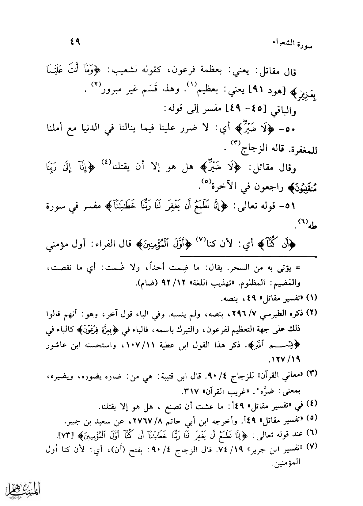 (¬1) "تفسير مقاتل" 49، بنصه.