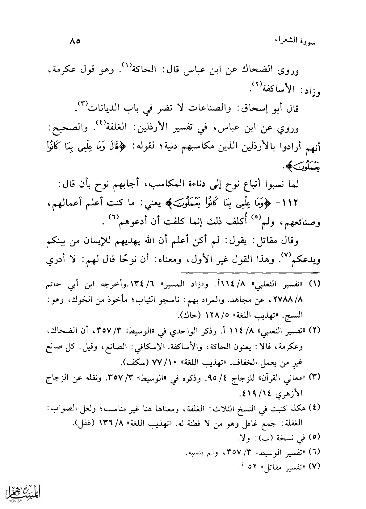 (¬2) "تفسير الثعلبي" 8/ 114 أ. وذكر الواحدي في "الوسيط" 3/ 357، أن الضحاك، وعكرمة، قالا: يعنون الحاكة، والأساكفة. الإسكافي: الصانع، وقيل: كل صانع غيرِ من يعمل الخفاف. "تهذيب اللغة" 10/ 77 (سكف).