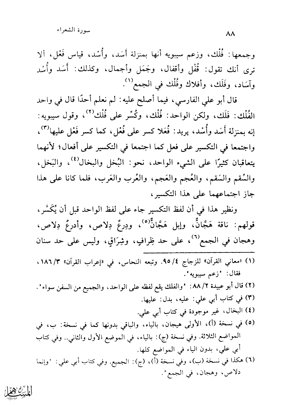 (¬6) هكذا في نسخة (ب)، وفي نسخة (أ)، (ج): الجميع. وفي كتاب أبي علي: "وإنما دلاص، وهجان، في الجمع".