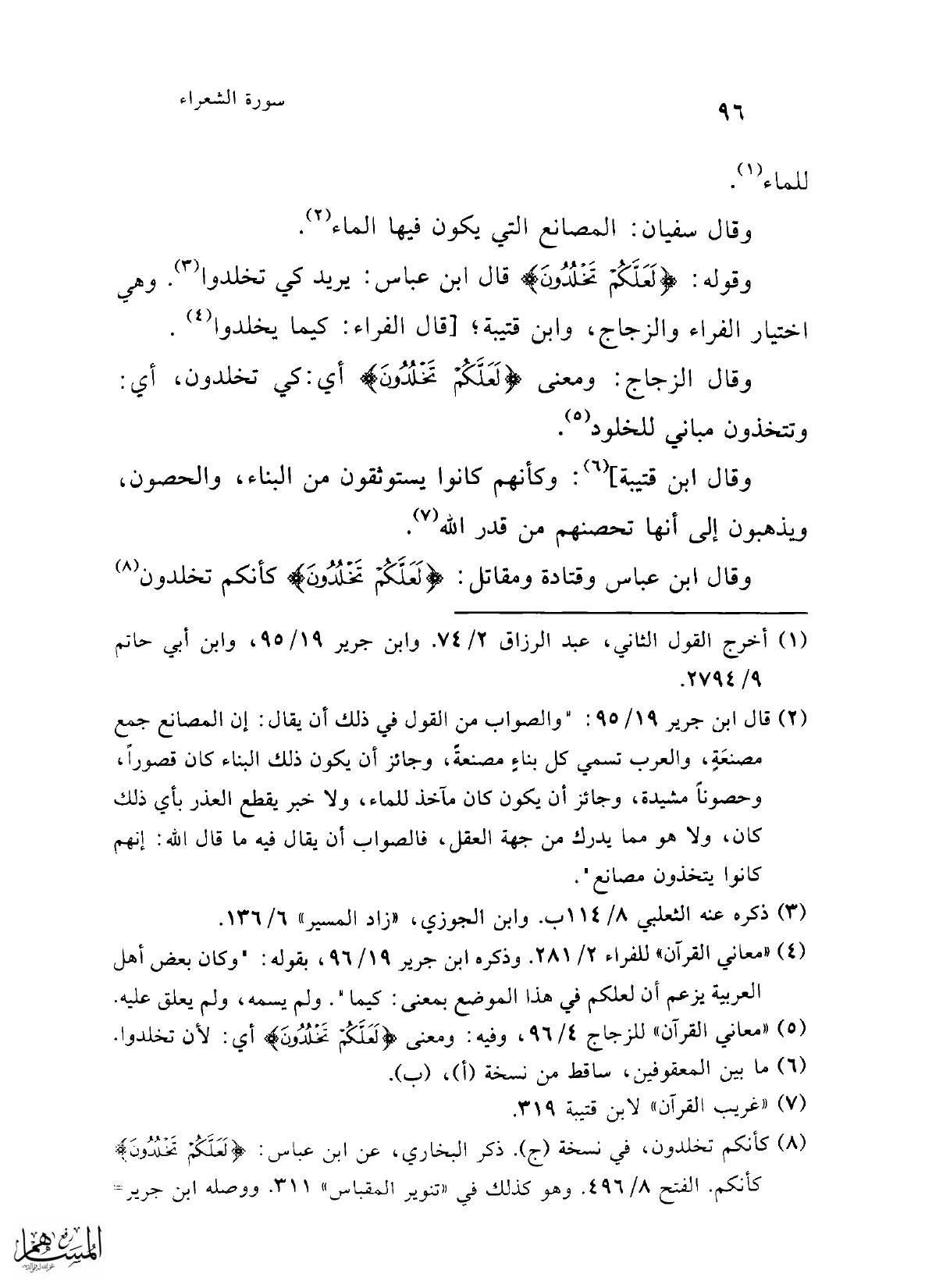(¬8) كأنكم تخلدون، في نسخة (ج). ذكر البخاري، عن ابن عباس: {لَعَلَّكُمْ تَخْلُدُونَ} كأنكم. الفتح 8/ 496. وهو كذلك في "تنوير المقباس" 311. ووصله ابن جرير=