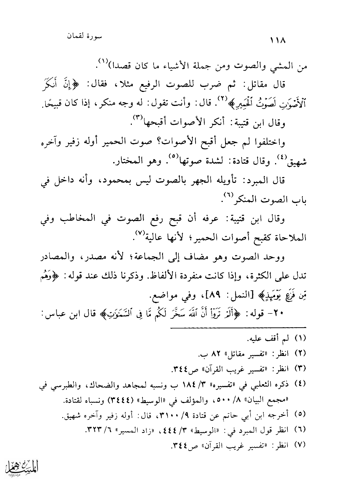 قال مقاتل: ثم ضرب للصوت الرفيع مثلا، فقال: {إِنَّ أَنْكَرَ الْأَصْوَاتِ لَصَوْتُ الْحَمِيرِ} (¬2). قال: وأنت تقول: له وجه منكر، إذا كان قبيحًا.
