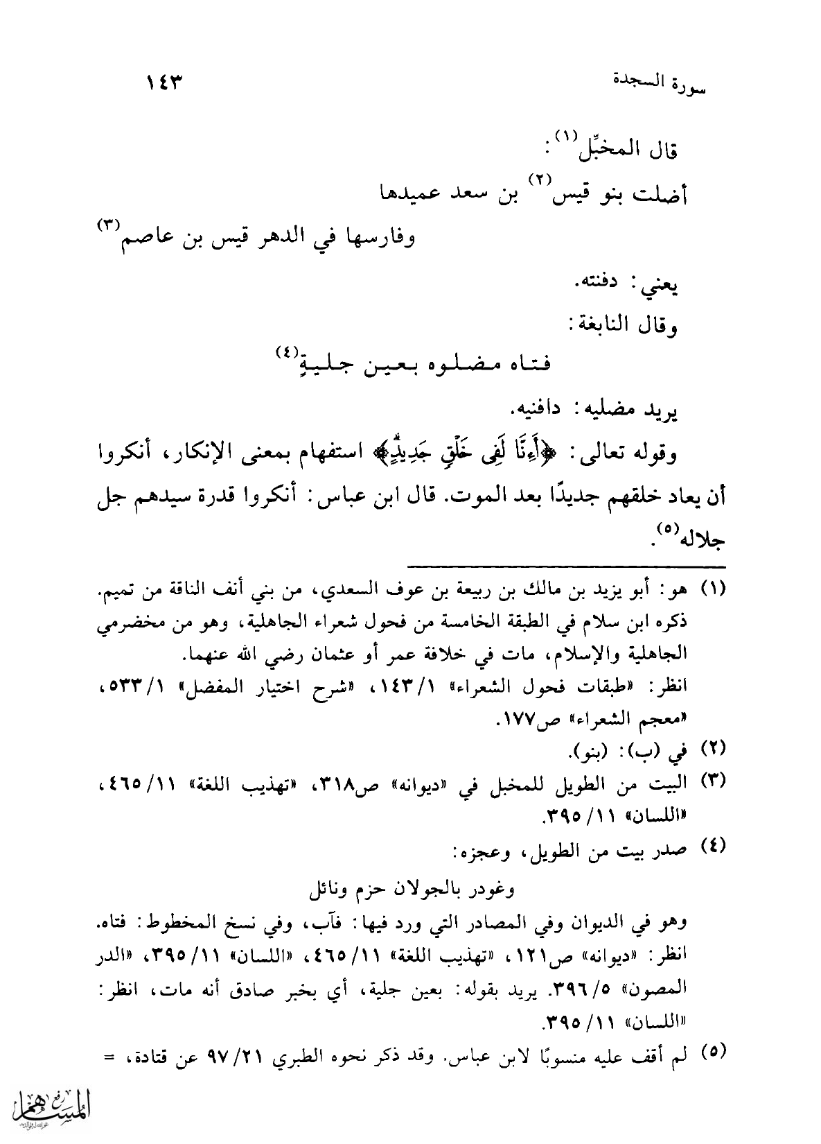 (¬3) البيت من الطويل للمخبل في "ديوانه" ص 318، "تهذيب اللغة" 11/ 465، "اللسان" 11/ 395.