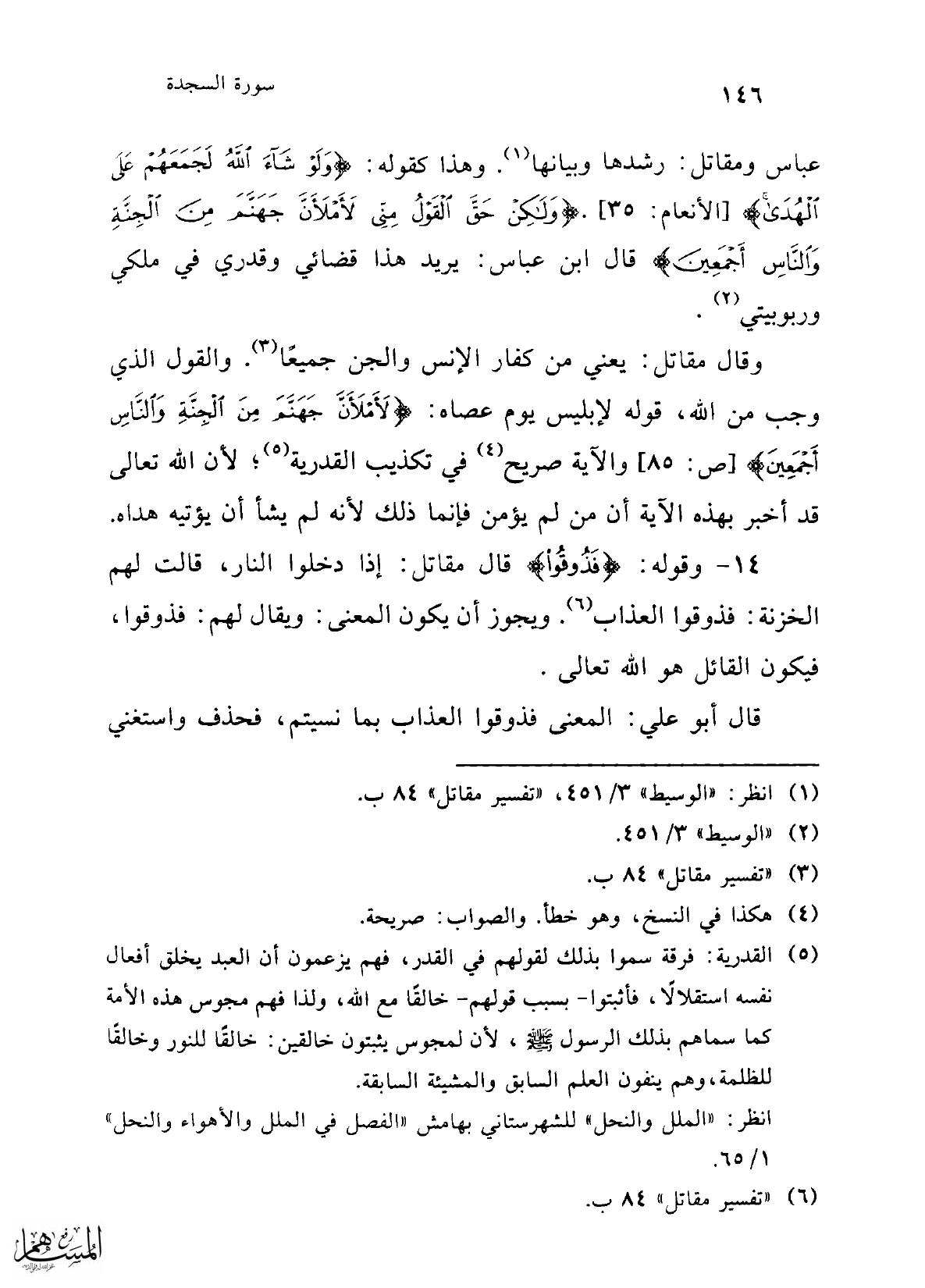 (¬6) "تفسير مقاتل" 84 ب.
