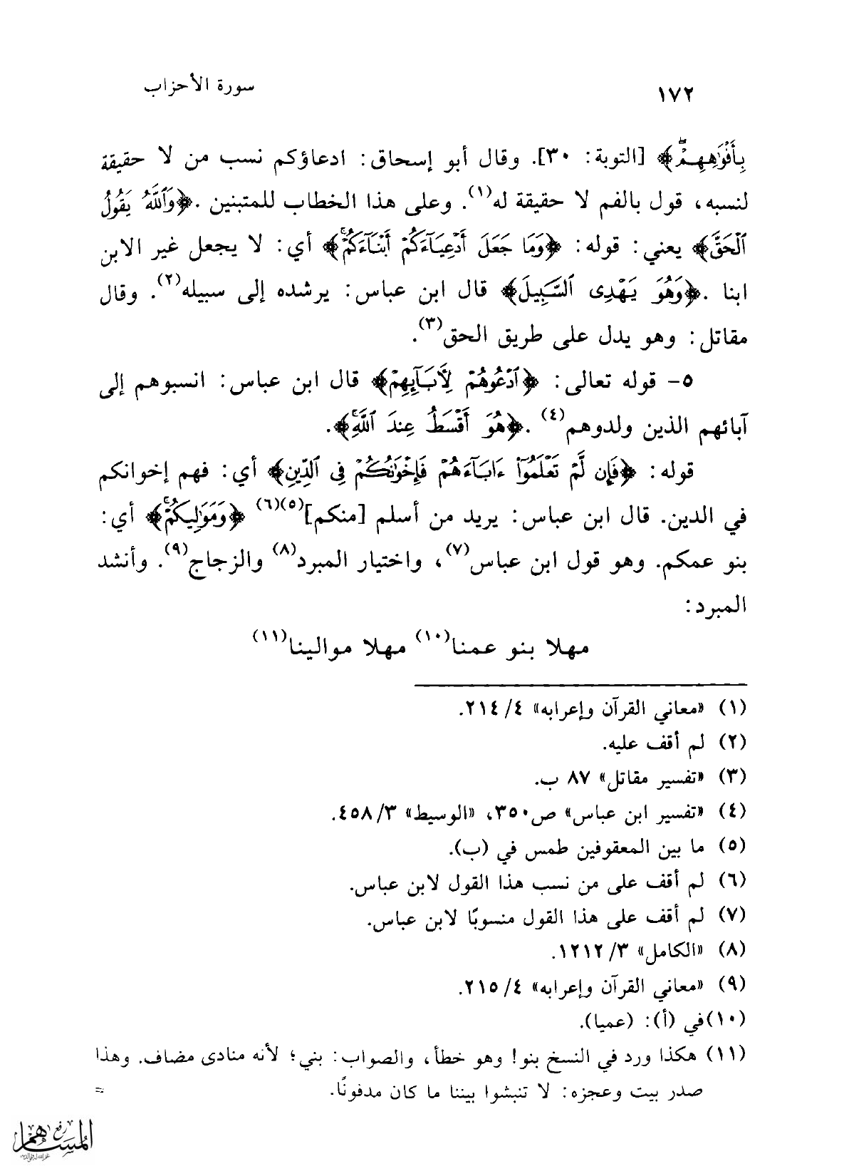 5 - قوله تعالى: {ادْعُوهُمْ لِآبَائِهِمْ} قال ابن عباس: انسبوهم إلى آبائهم الذين ولدوهم (¬4). {هُوَ أَقْسَطُ عِنْدَ اللَّهِ}.