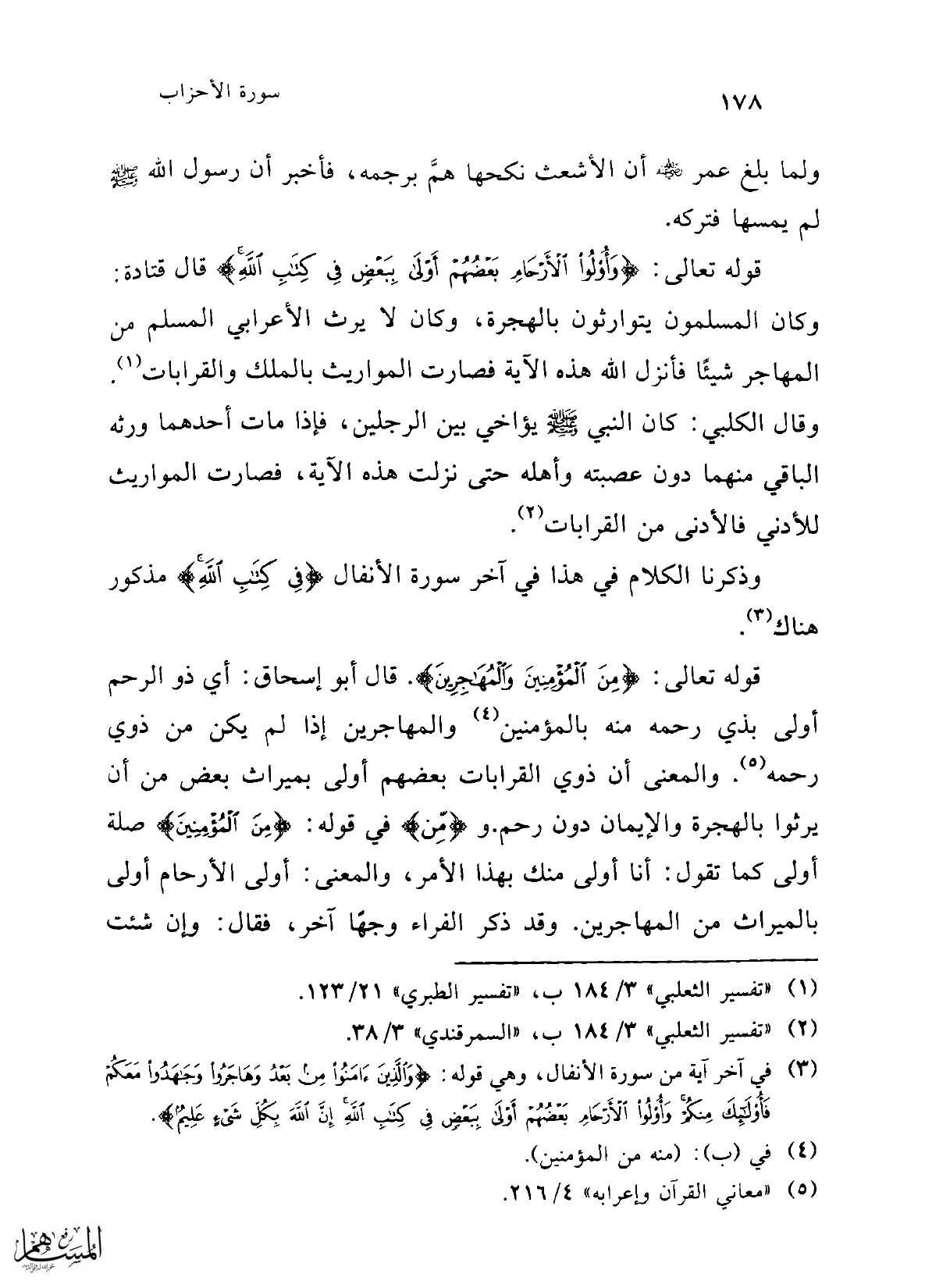 (¬3) في آخر آية من سورة الأنفال، وهي قوله: {وَالَّذِينَ آمَنُوا مِنْ بَعْدُ وَهَاجَرُوا وَجَاهَدُوا مَعَكُمْ فَأُولَئِكَ مِنْكُمْ وَأُولُو الْأَرْحَامِ بَعْضُهُمْ أَوْلَى بِبَعْضٍ فِي كِتَابِ اللَّهِ إِنَّ اللَّهَ بِكُلِّ شَيْءٍ عَلِيمٌ}.