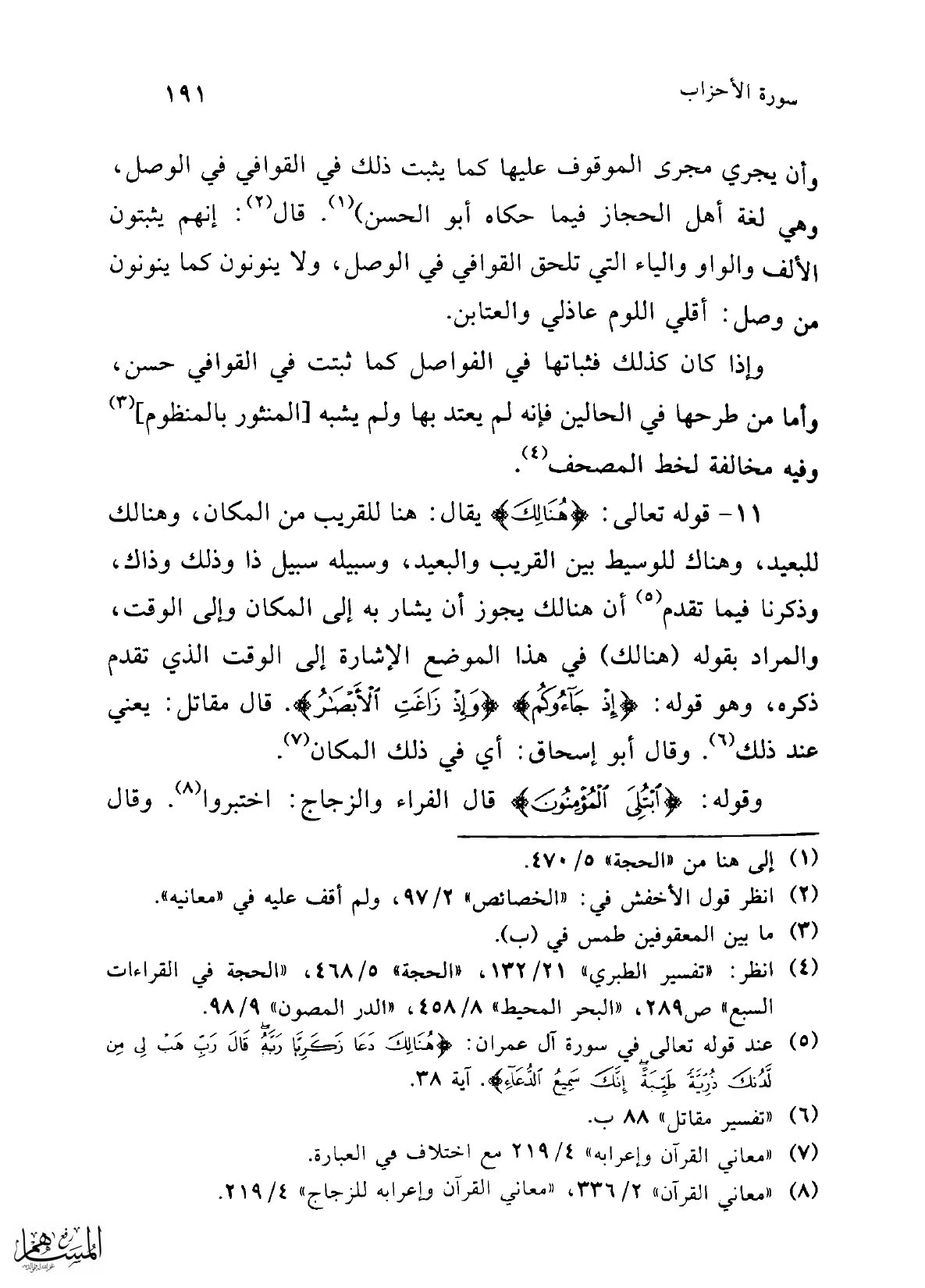 (¬8) "معاني القرآن" 2/ 336، "معاني القرآن وإعرابه للزجاج" 4/ 219.