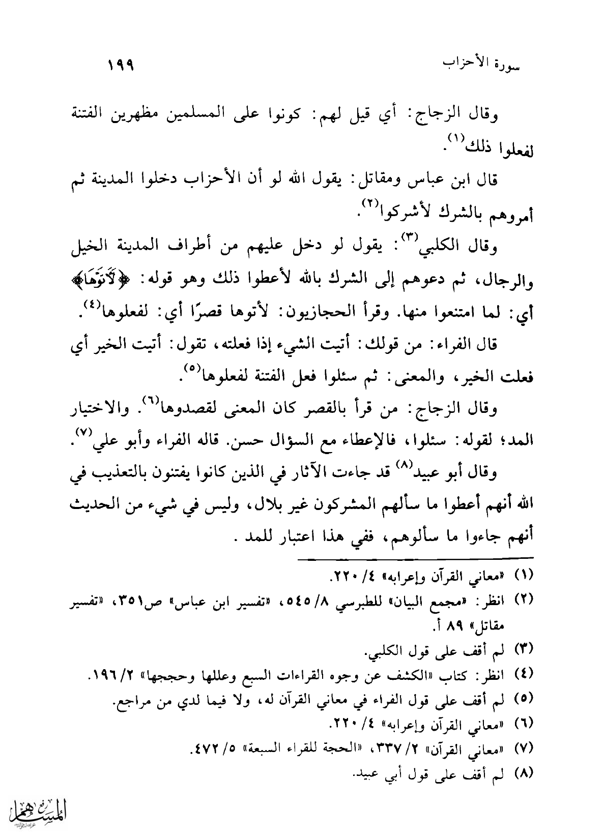 (¬5) لم أقف على قول الفراء في معاني القرآن له، ولا فيما لدي من مراجع.