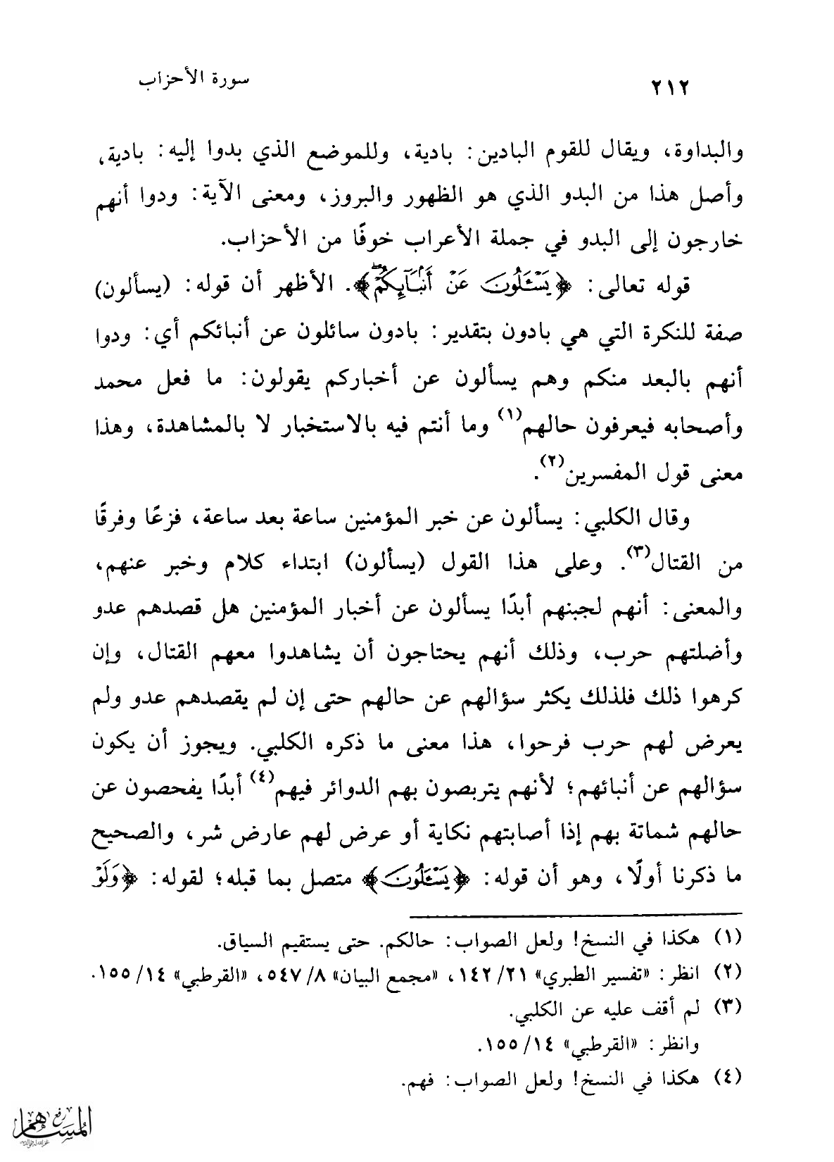 (¬2) انظر: "تفسير الطبري" 21/ 142، "مجمع البيان" 8/ 547، "القرطبي" 14/ 155