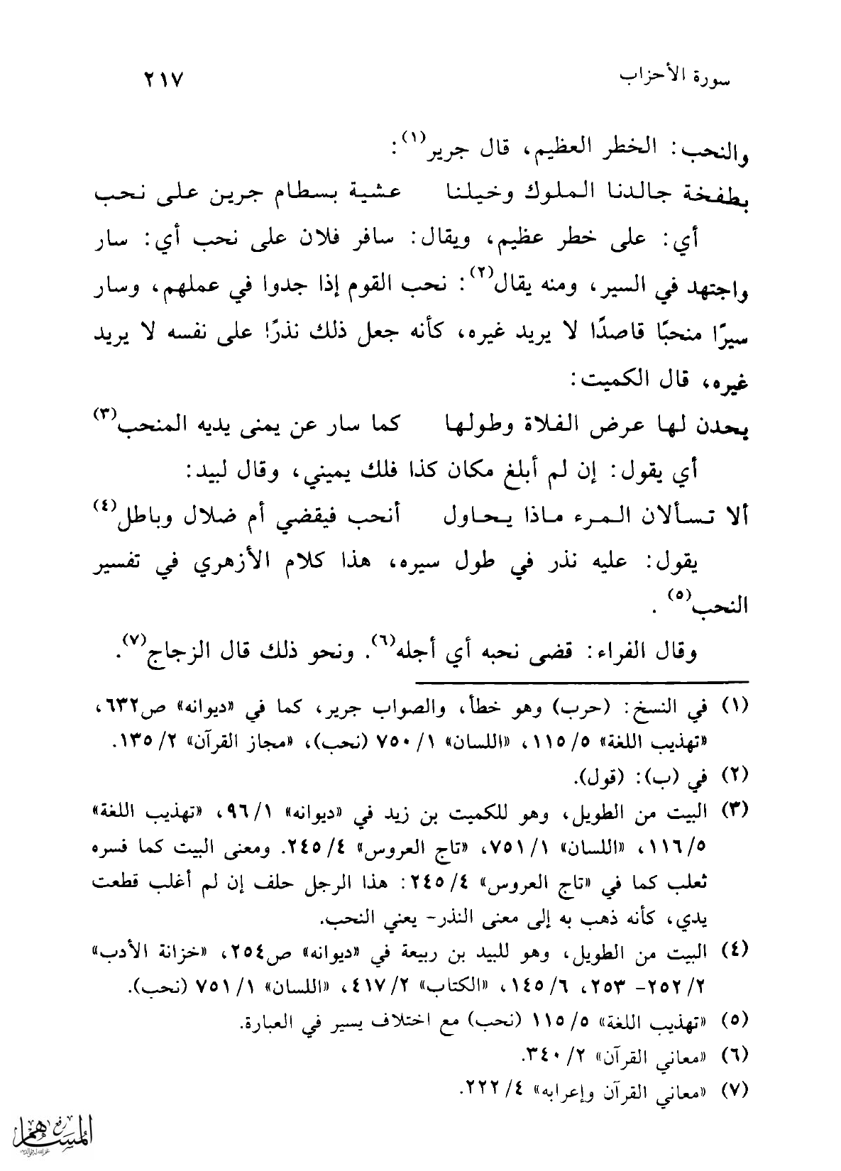 (¬1) في النسخ: (حرب) وهو خطأ، والصواب جرير، كما في "ديوانه" ص 632، "تهذيب اللغة" 5/ 115، "اللسان" 1/ 750 (نحب)، "مجاز القرآن" 2/ 135.