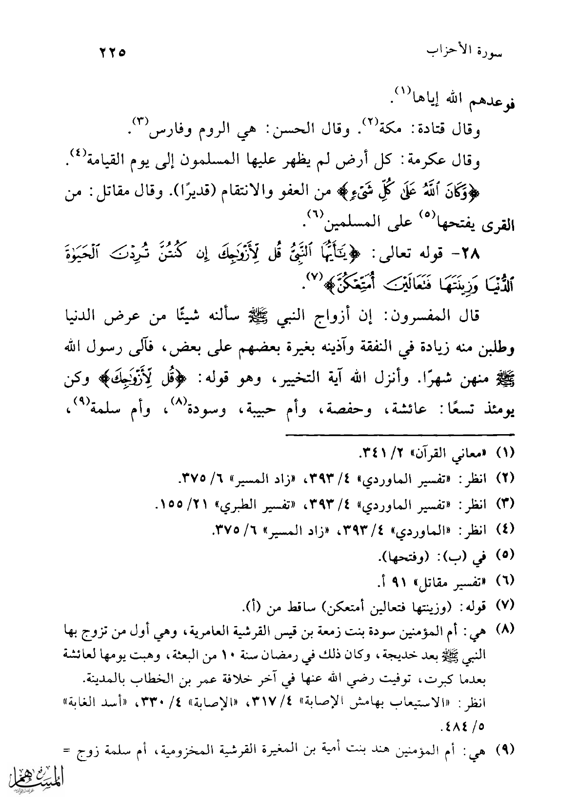 28 - قوله تعالى: {يَا أَيُّهَا النَّبِيُّ قُلْ لِأَزْوَاجِكَ إِنْ كُنْتُنَّ تُرِدْنَ الْحَيَاةَ الدُّنْيَا وَزِينَتَهَا فَتَعَالَيْنَ أُمَتِّعْكُنَّ} (¬7).