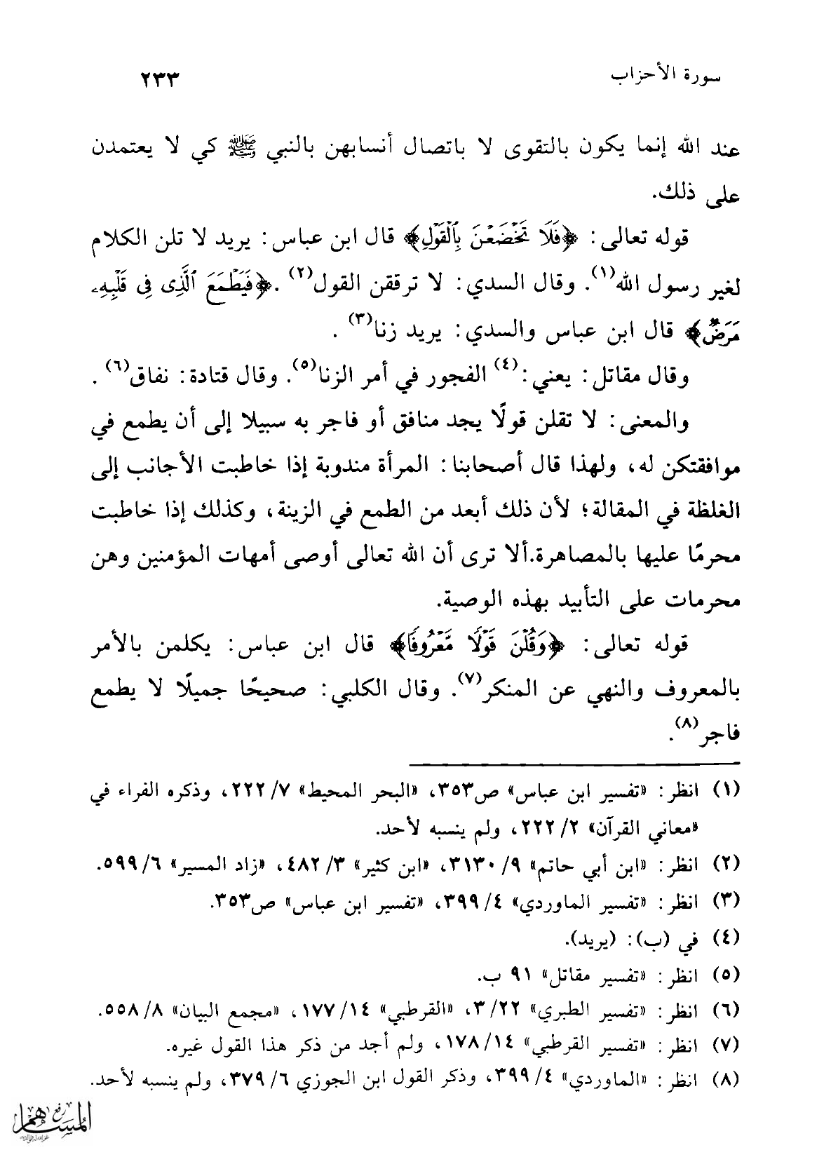 (¬6) انظر: "تفسير الطبري" 22/ 3، "القرطبي" 14/ 177، "مجمع البيان" 8/ 558.