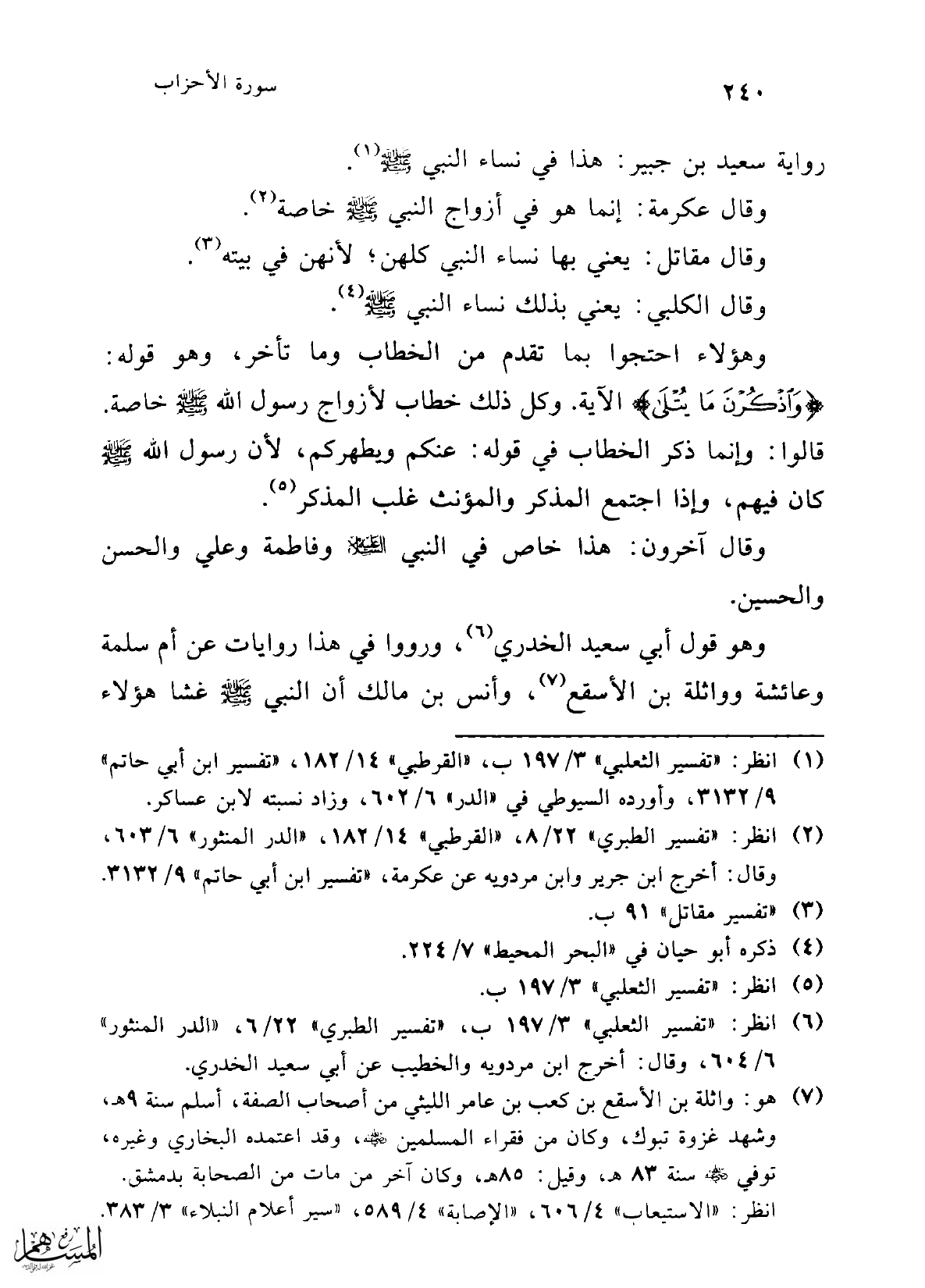 رواية سعيد بن جبير: هذا في نساء النبي -صلى الله عليه وسلم- (¬1).