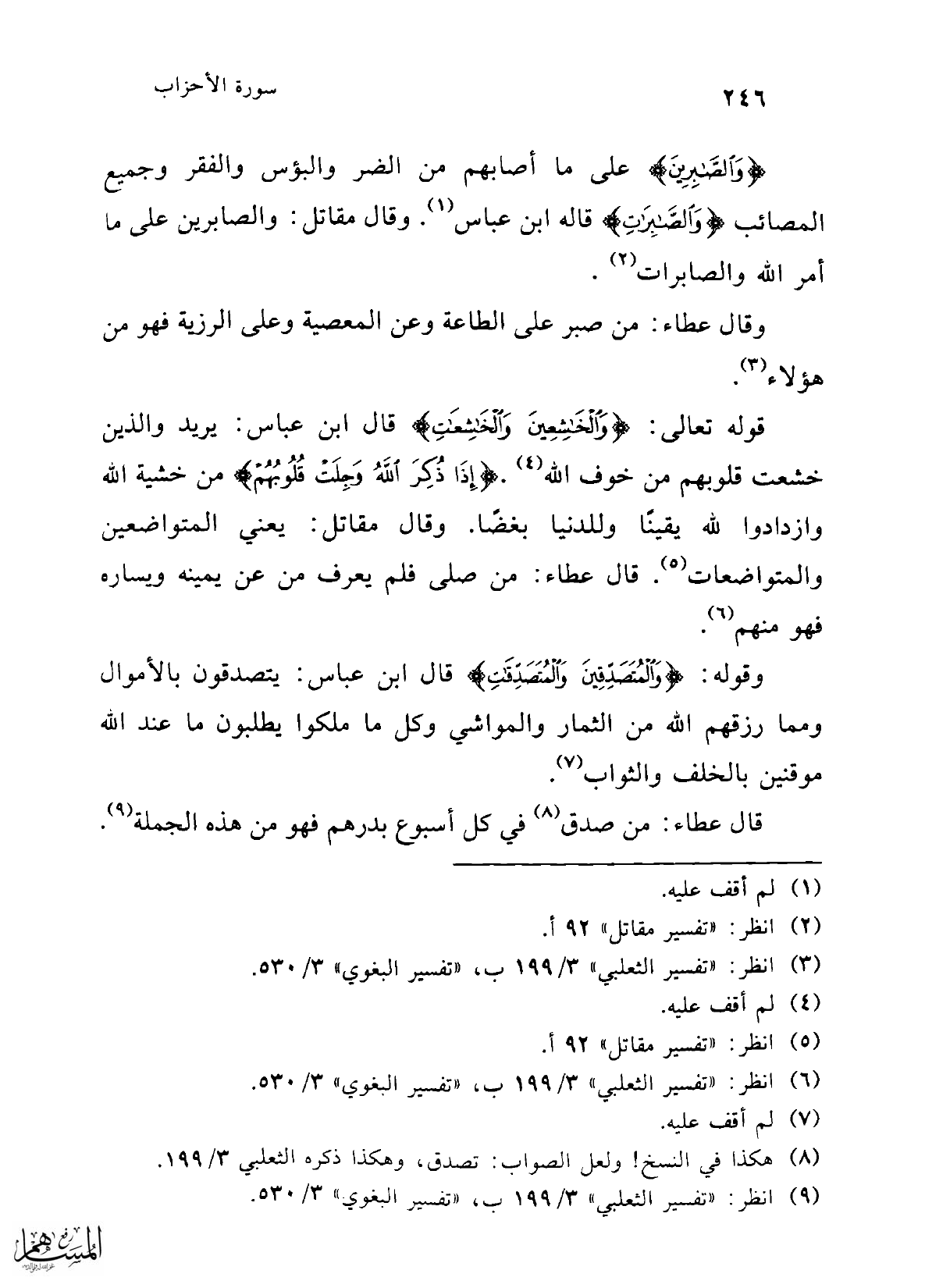 (¬6) انظر: "تفسير الثعلبي" 199/ 3 ب، "تفسير البغوي" 3/ 530.