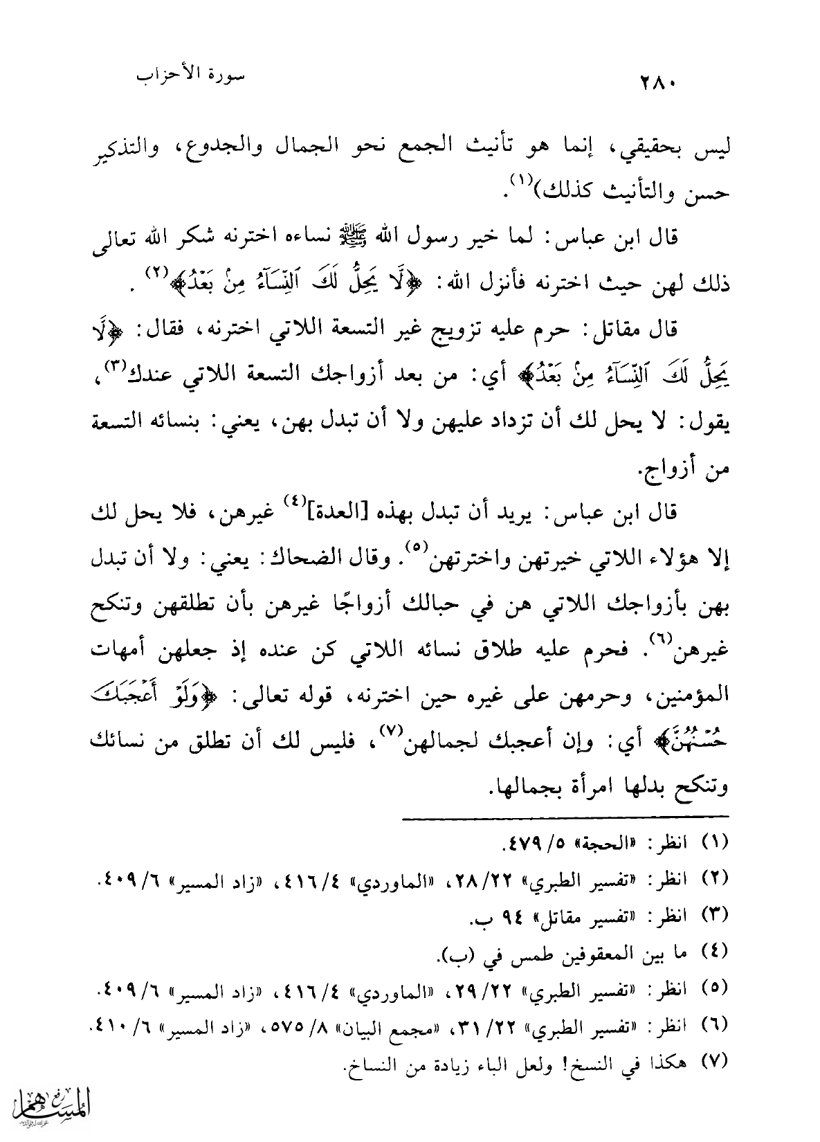(¬5) انظر: "تفسير الطبري" 22/ 29، "الماوردي" 4/ 416، "زاد المسير" 6/ 409.