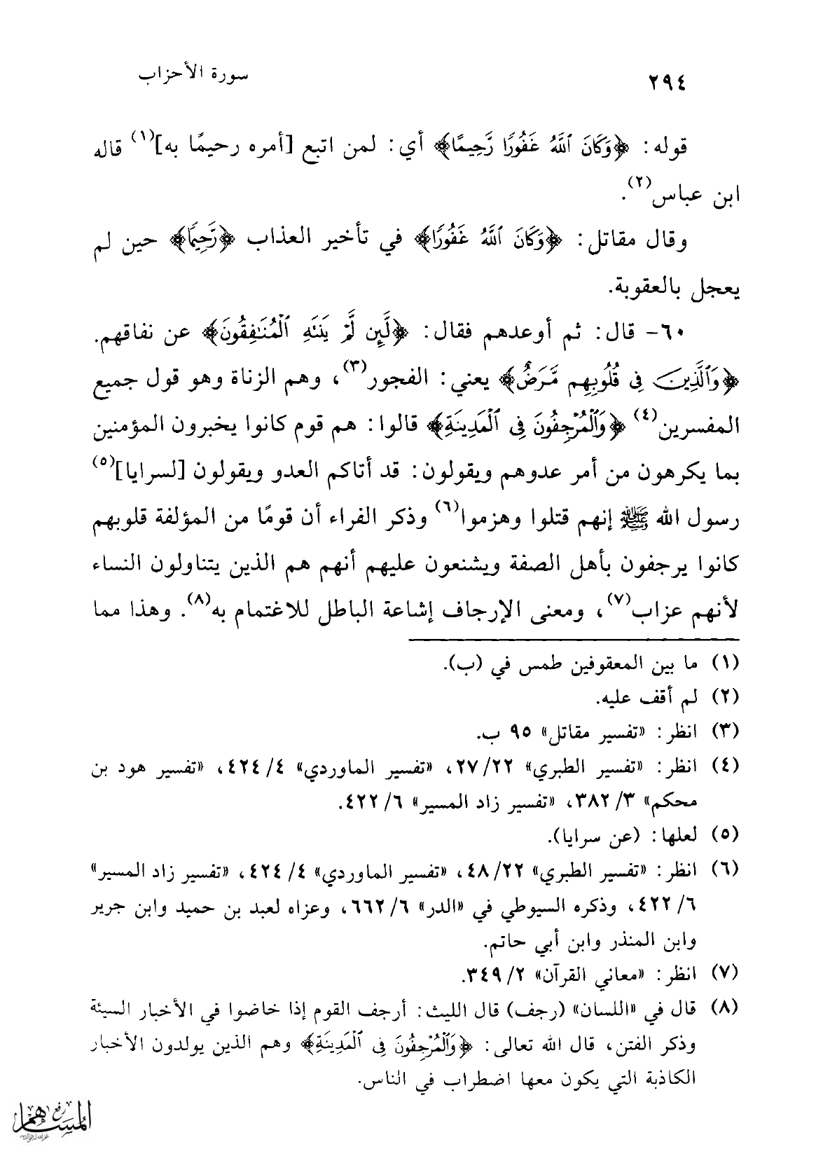 (¬4) انظر: "تفسير الطبري" 22/ 27، "تفسير الماوردي" 4/ 424، "تفسير هود بن محكم" 3/ 382، "تفسير زاد المسير" 6/ 422.