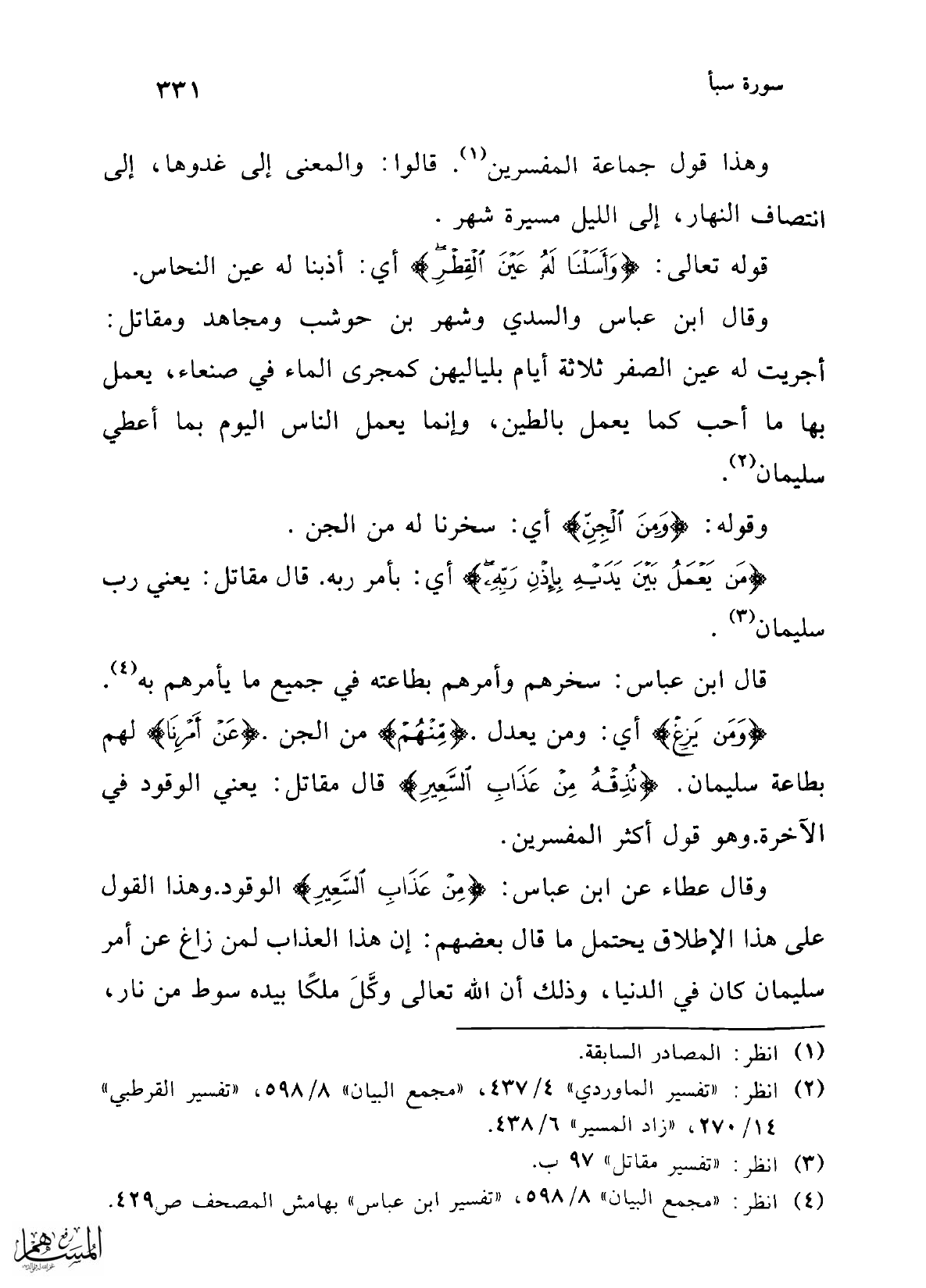 (¬4) انظر: "مجمع البيان" 8/ 598، "تفسير ابن عباس" بهامش المصحف ص 429.
