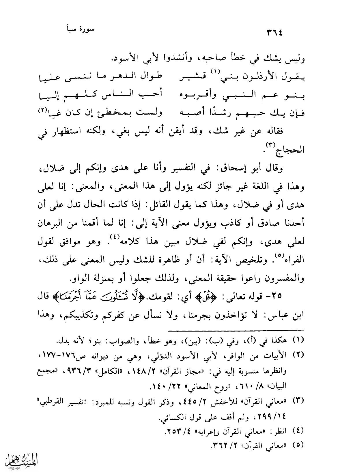 (¬4) انظر: "معاني القرآن وإعرابه" 4/ 253.