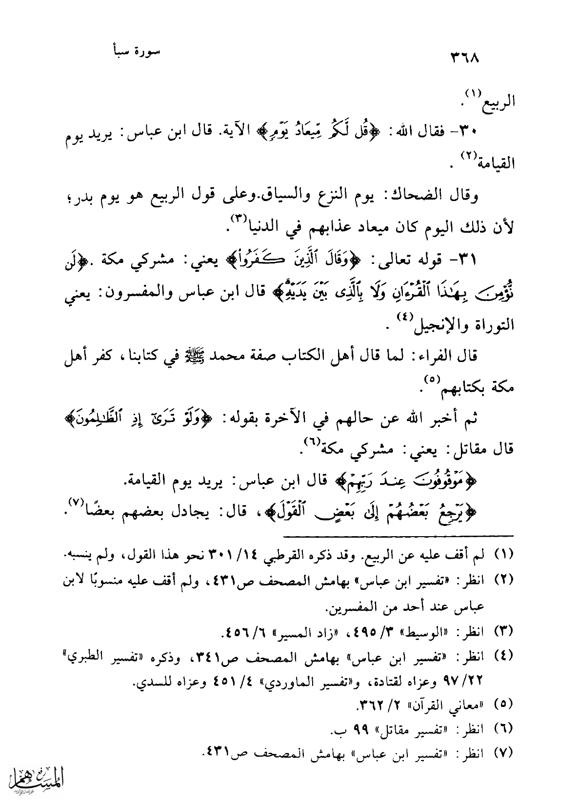 (¬7) انظر: "تفسير ابن عباس" بهامش المصحف ص 431.