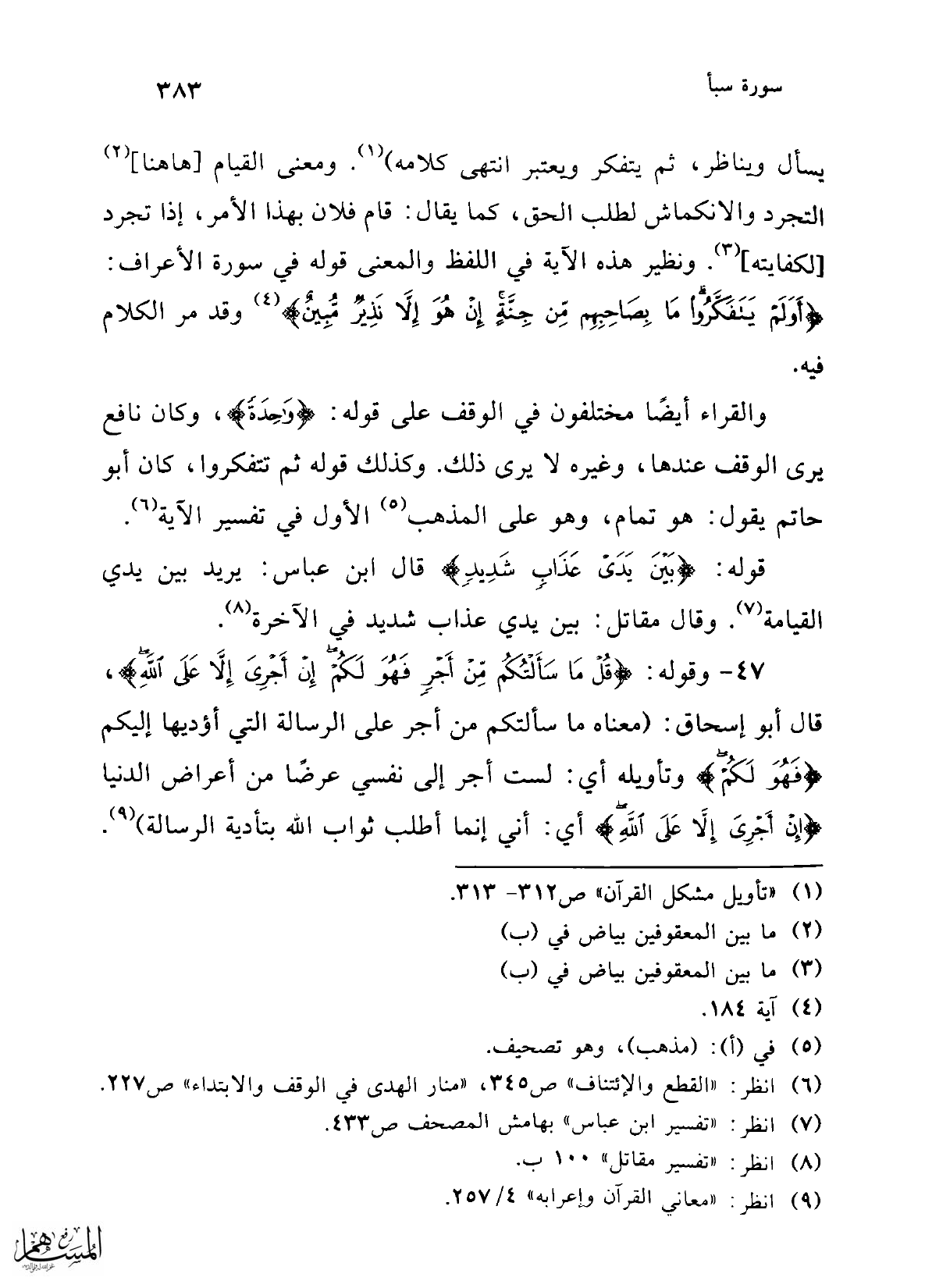 (¬6) انظر: "القطع والإئتناف" ص 345، "منار الهدى في الوقف والابتداء" ص 227.