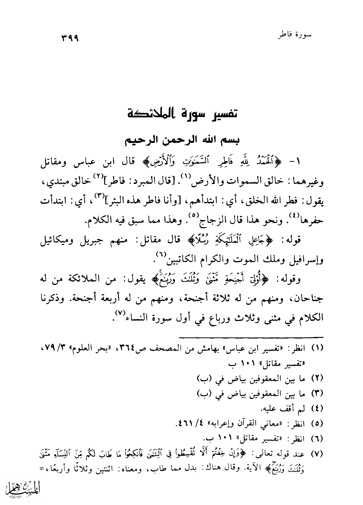 (¬1) انظر: "تفسير ابن عباس" بهامش من المصحف ص 364، "بحر العلوم" 3/ 79، "تفسير مقاتل" 101 ب