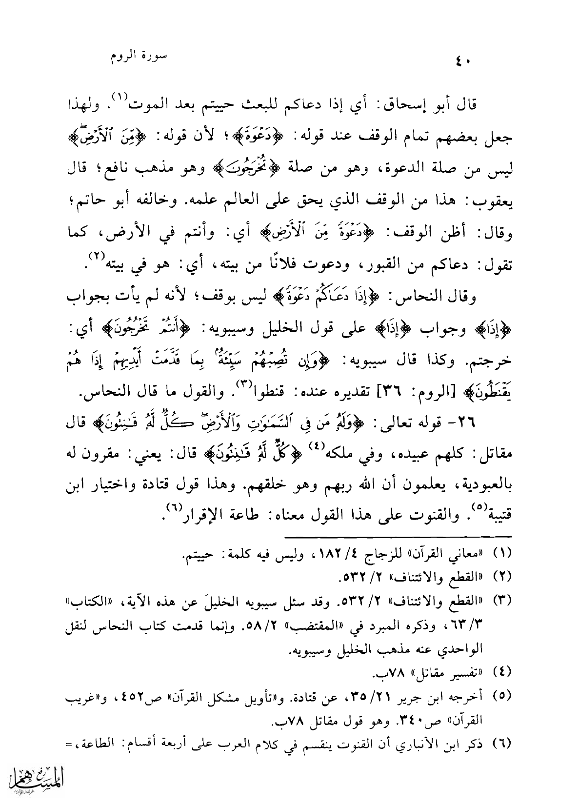(¬3) "القطع والائتناف" 2/ 532. وقد سئل سيبويه الخليلَ عن هذه الآية، "الكتاب" 3/ 63، وذكره المبرد في "المقتضب" 2/ 58. وإنما قدمت كتاب النحاس لنقل الواحدي عنه مذهب الخليل وسيبويه.