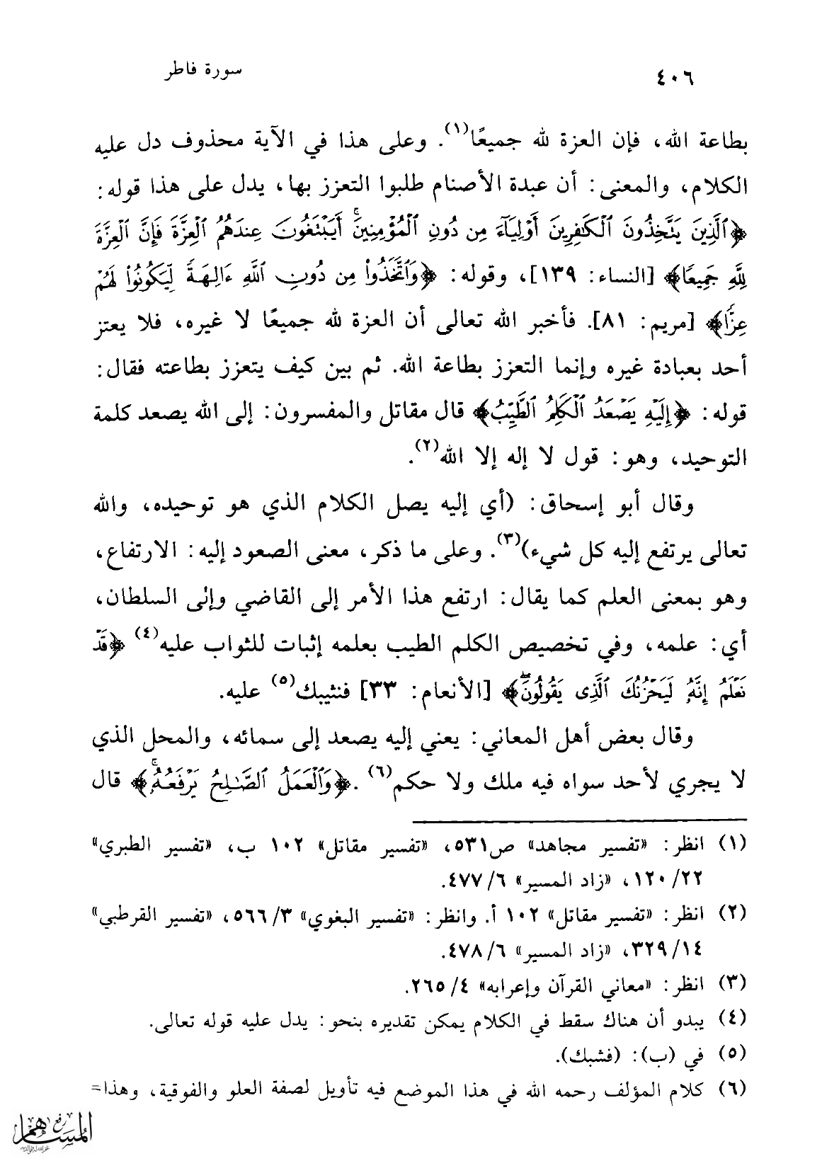 (¬4) يبدو أن هناك سقط في الكلام يمكن تقديره بنحو: يدل عليه قوله تعالى.