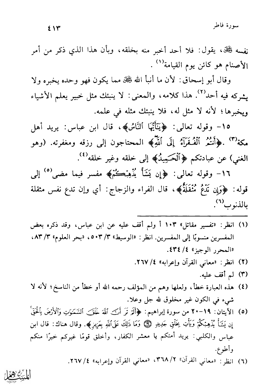 (¬6) انظر: "معاني القرآن" 2/ 368، "معاني القرآن وإعرابه" 4/ 267.