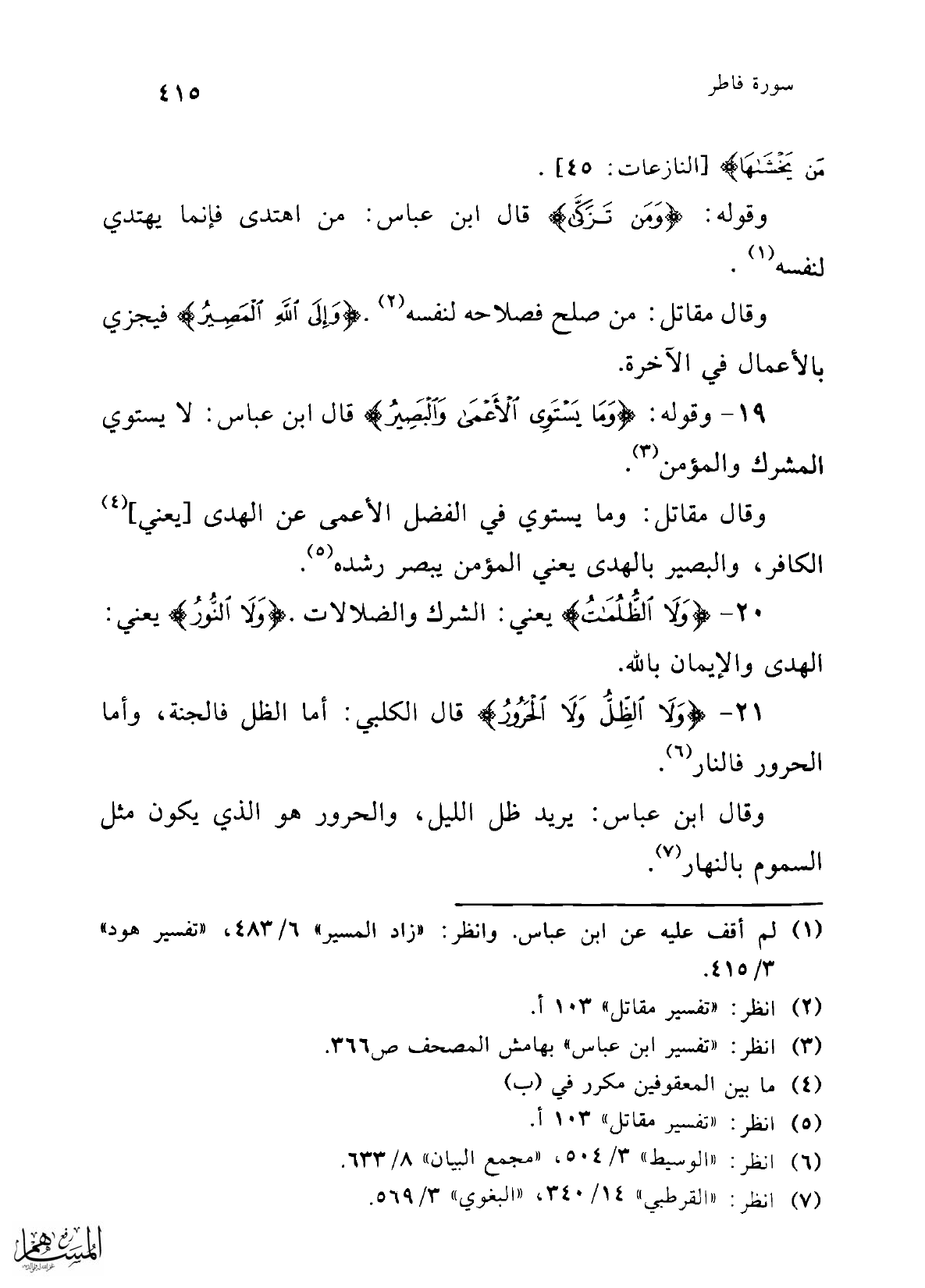 (¬3) انظر: "تفسير ابن عباس" بهامش المصحف ص 366.