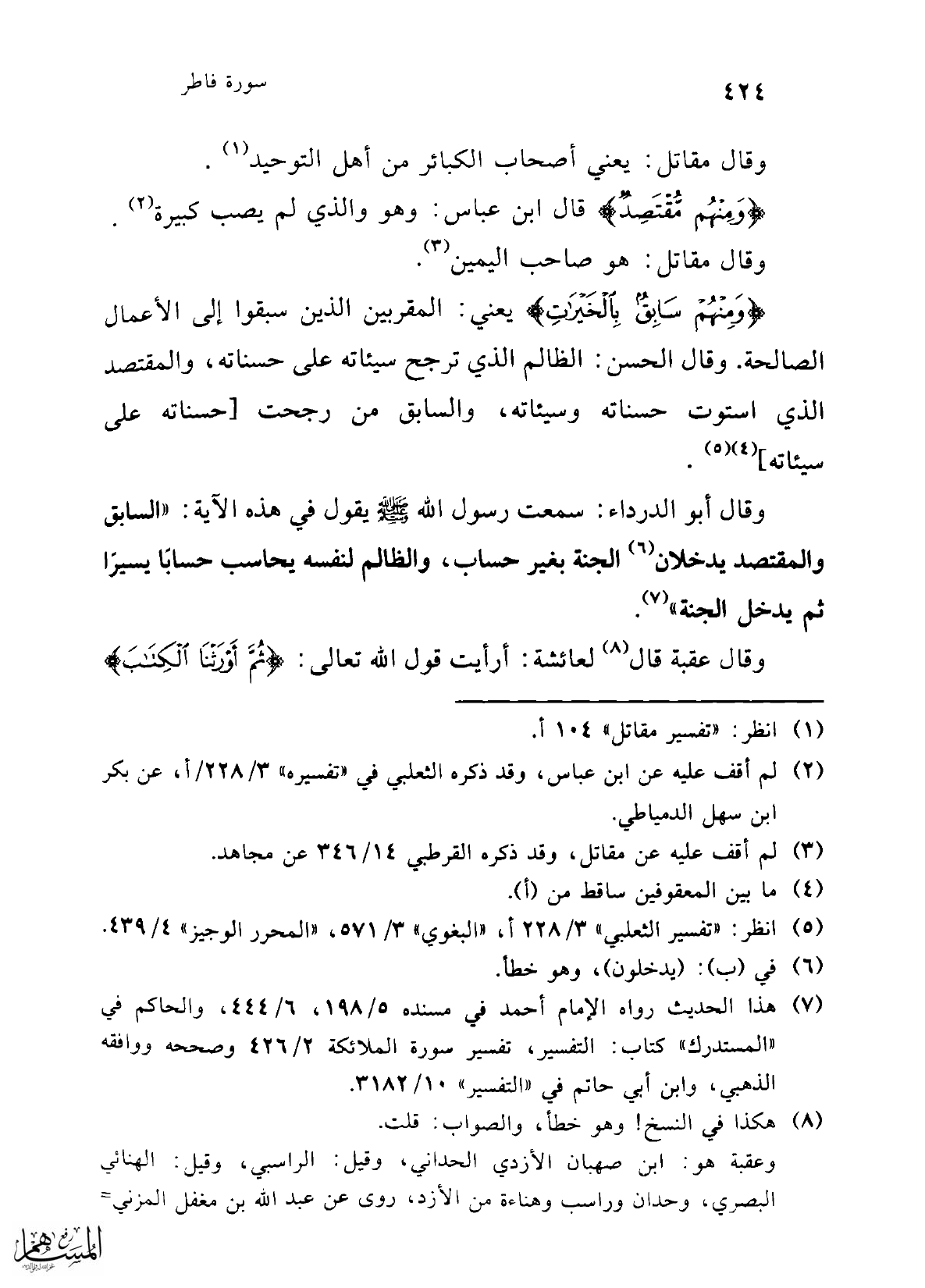 {وَمِنْهُمْ مُقْتَصِدٌ} قال ابن عباس: وهو والذي لم يصب كبيرة (¬2).