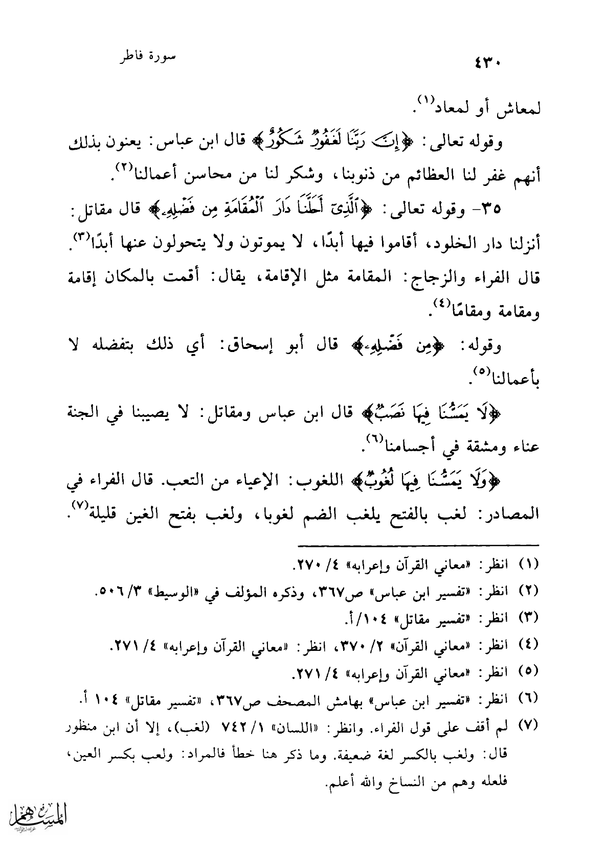 (¬6) انظر: "تفسير ابن عباس" بهامش المصحف ص 367، "تفسير مقاتل" 104 أ.