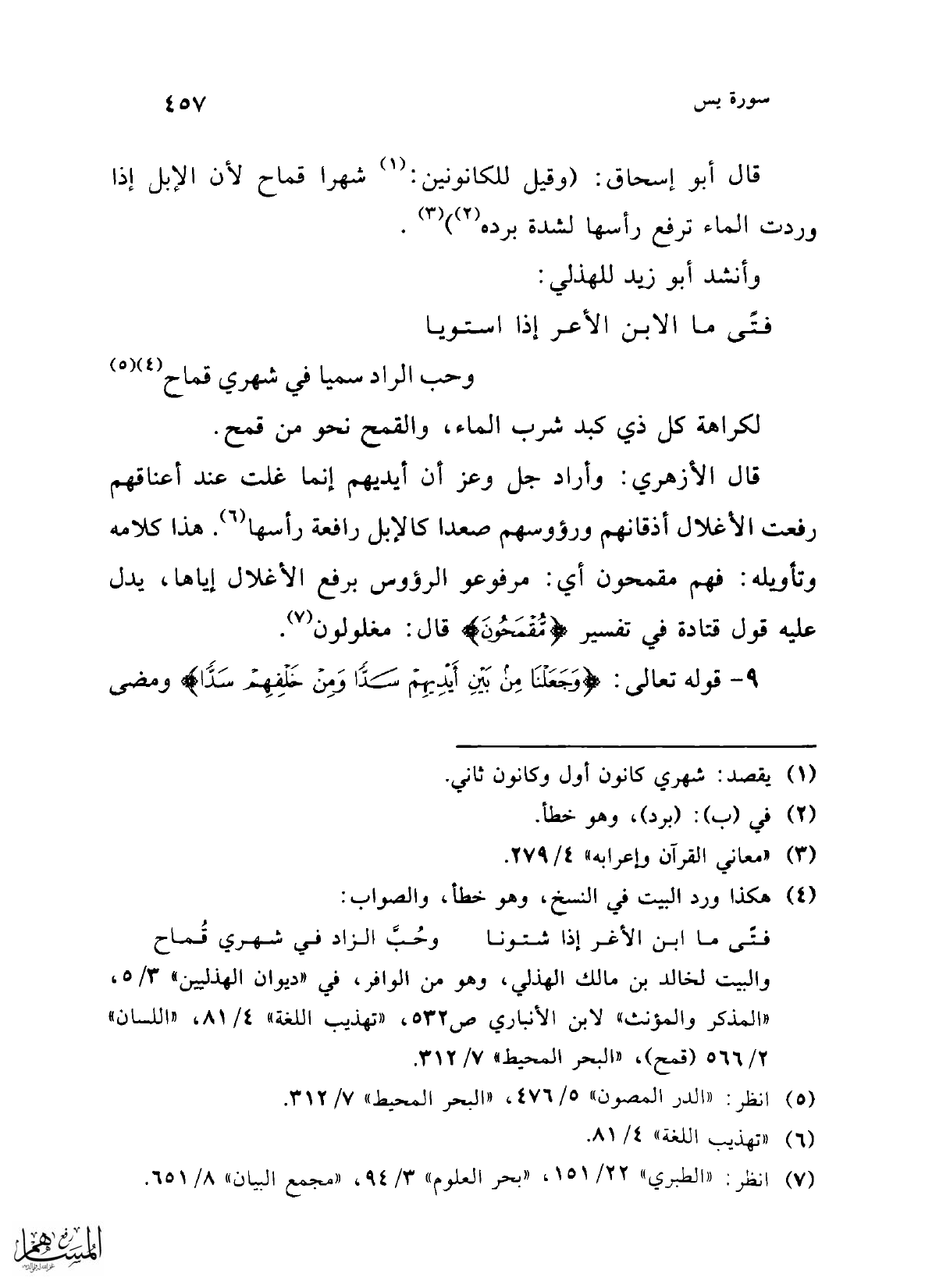 قال أبو إسحاق: (وقيل للكانونين: (¬1) شهرا قماح لأن الإبل إذا وردت الماء ترفع رأسها لشدة برده (¬2)) (¬3).