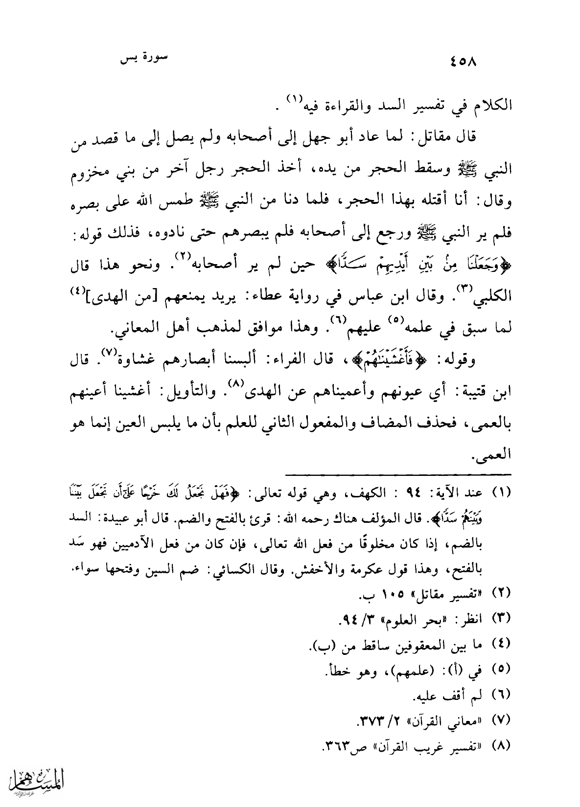 الكلام في تفسير السد والقراءة فيه (¬1).