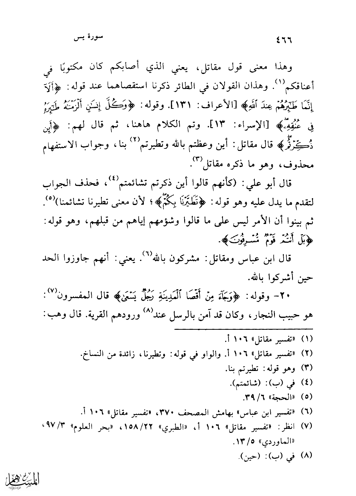 (¬6) "تفسير ابن عباس" بهامش المصحف 370، "تفسير مقاتل" 106 أ.