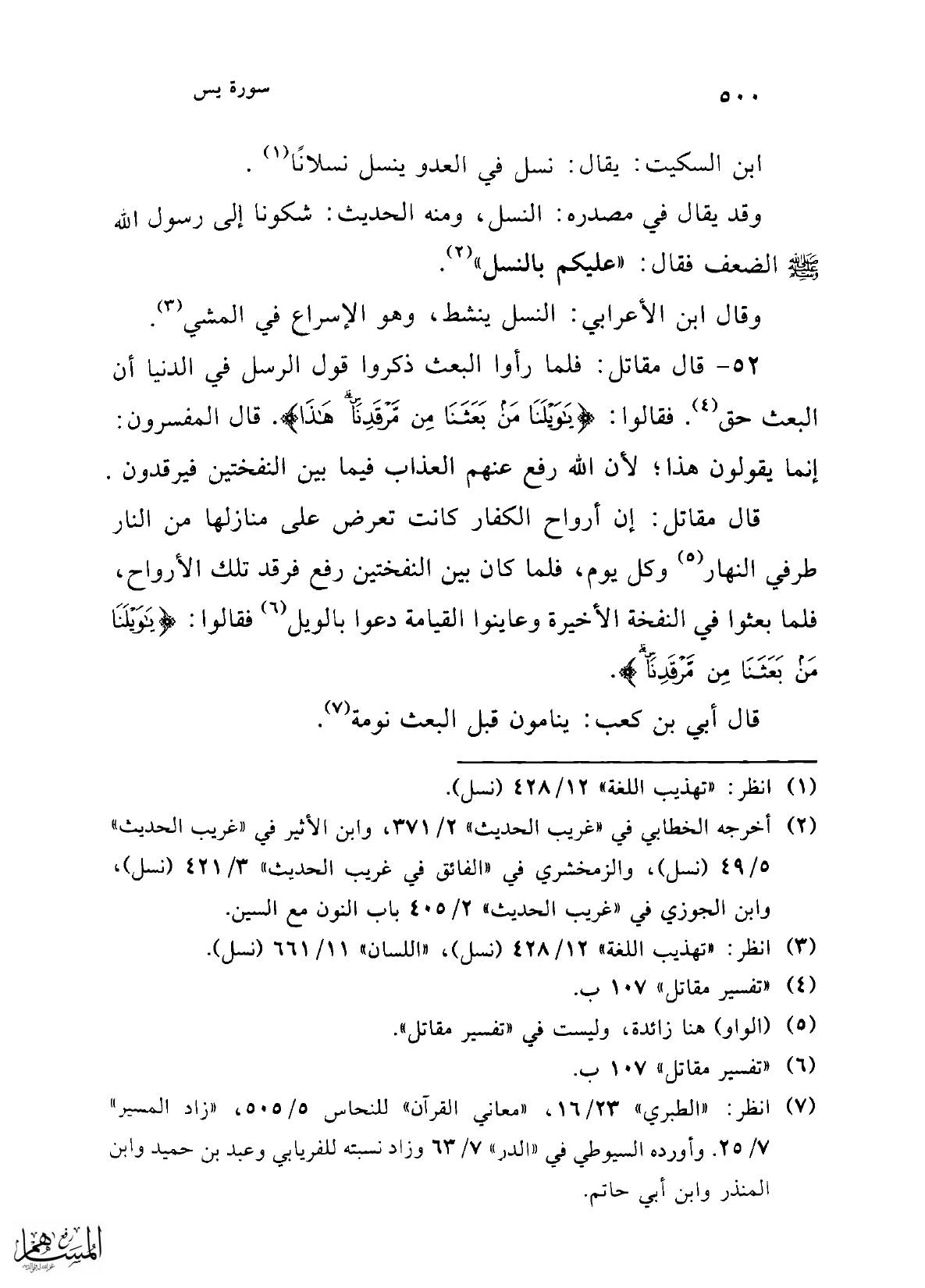 (¬3) انظر: "تهذيب اللغة" 12/ 428 (نسل)، "اللسان" 11/ 661 (نسل).
