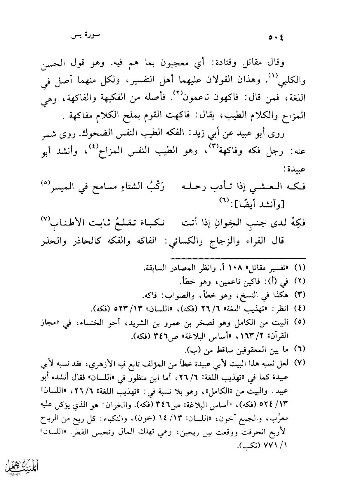 (¬4) انظر: "تهذيب اللغة" 6/ 26 (فكه)، "اللسان" 13/ 523 (فكه).