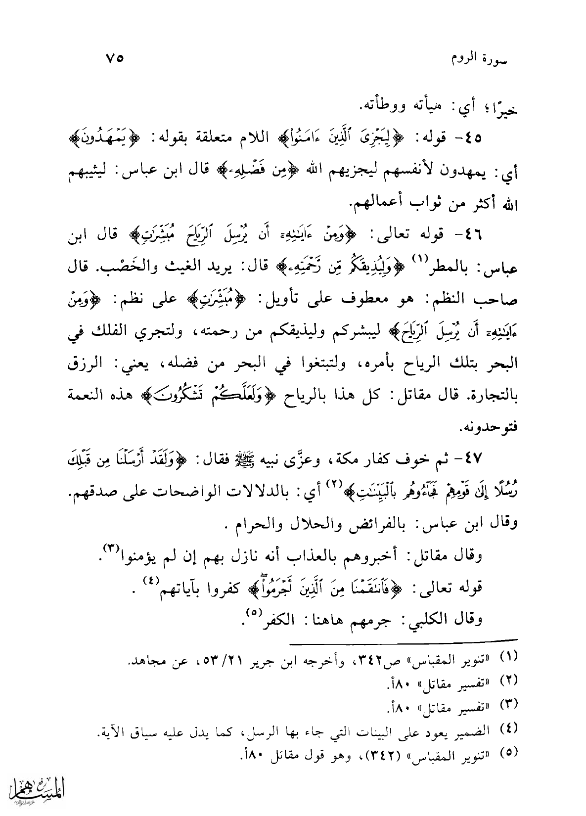 (¬5) "تنوير المقباس" (342)، وهو قول مقاتل 80 أ.