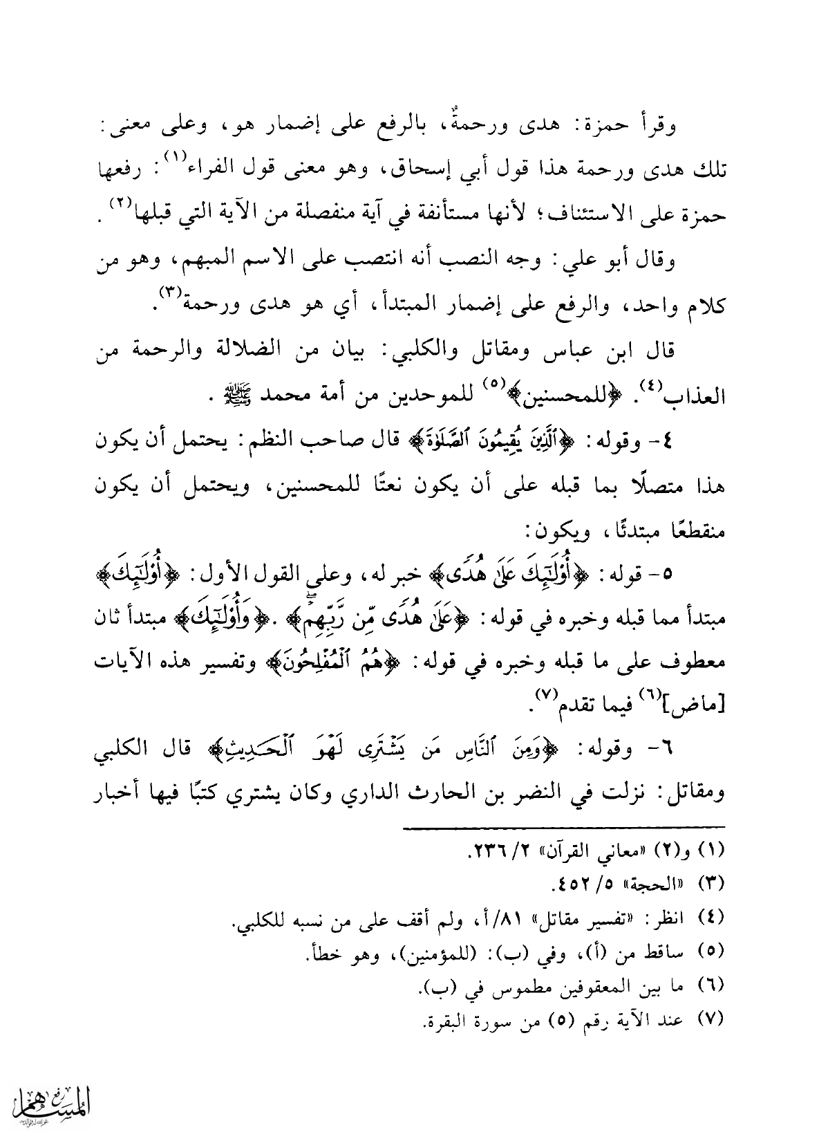 (7) عند الآية رقم (5) من سورة البقرة.