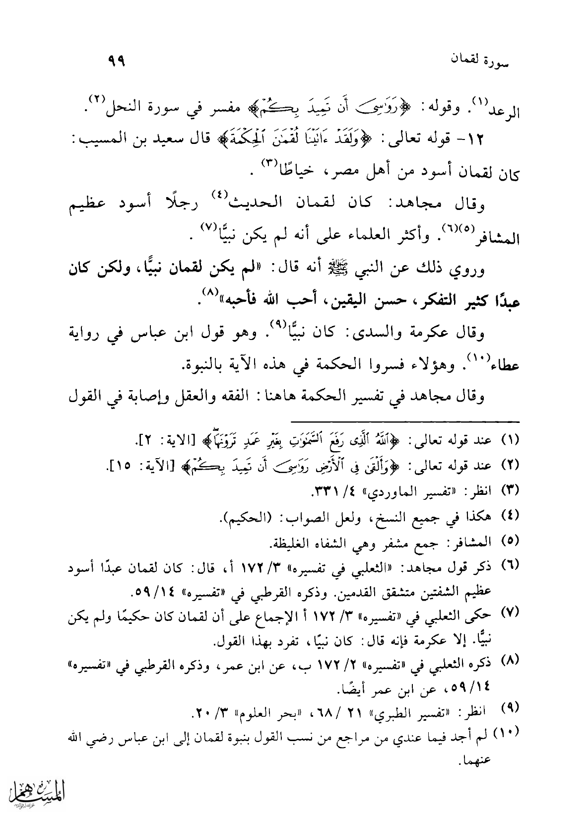 (¬10) لم أجد فيما عندي من مراجع من نسب القول بنبوة لقمان إلى ابن عباس رضي الله عنهما.
