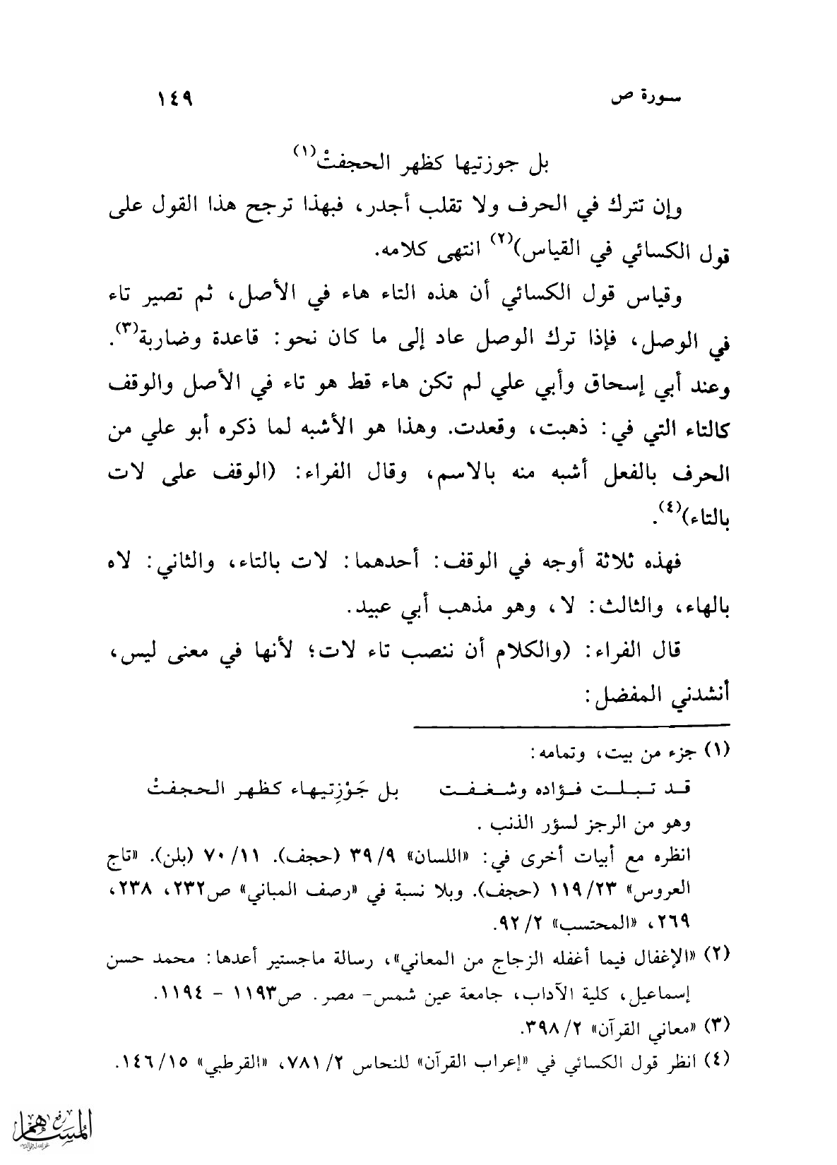 (¬4) انظر قول الكسائي في "إعراب القرآن" للنحاس 2/ 781، "القرطبي" 15/ 146.