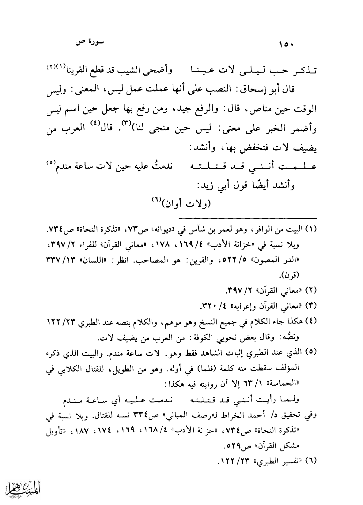 (¬4) هكذا جاء الكلام في جميع النسخ وهو موهم، والكلام بنصه عند الطبري 23/ 122 ونصُّه: وقال بعض نحوي الكوفة: من العرب من يضيف لات.