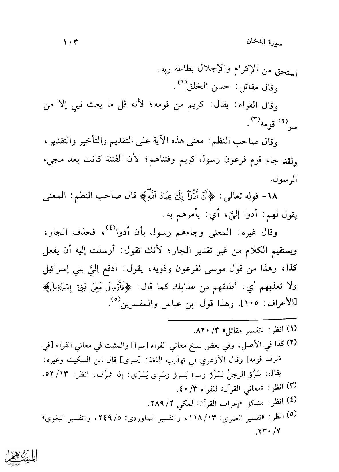 18 - قوله تعالى: {أَنْ أَدُّوا إِلَيَّ عِبَادَ اللَّهِ} قال صاحب النظم: المعنى يقول لهم: أدوا إليَّ، أي: يأمرهم به.