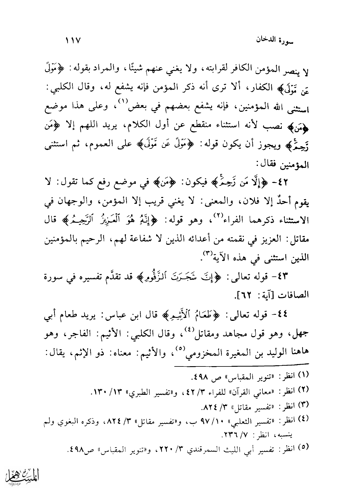 43 - قوله تعالى: {إِنَّ شَجَرَتَ الزَّقُّومِ} قد تقدَّم تفسيره في سورة الصافات [آية: 62].