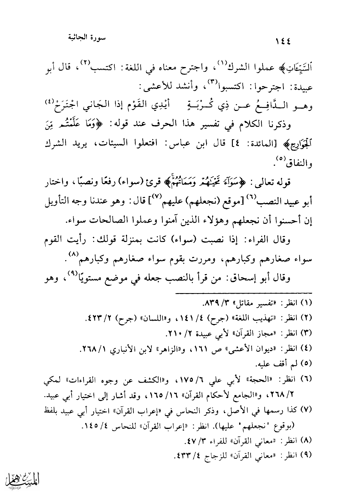 (¬9) انظر: "معاني القرآن" للزجاج 4/ 433.