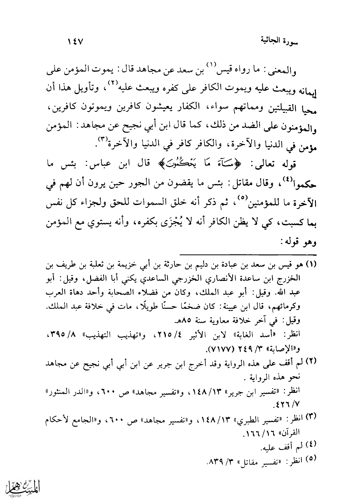 انظر: "تفسير ابن جرير" 13/ 148، و"تفسير مجاهد" ص 600، و"الدر المنثور" 7/ 426.