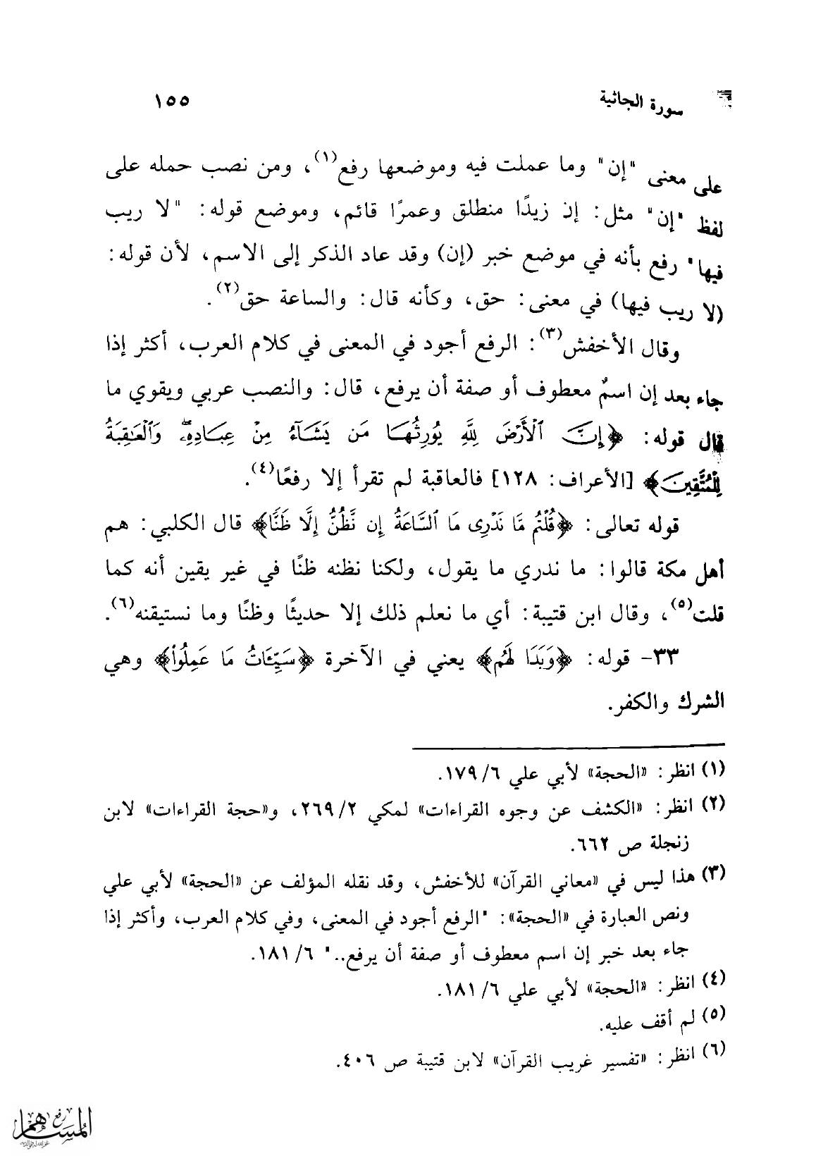 (¬1) انظر: "الحجة" لأبي علي 6/ 179.