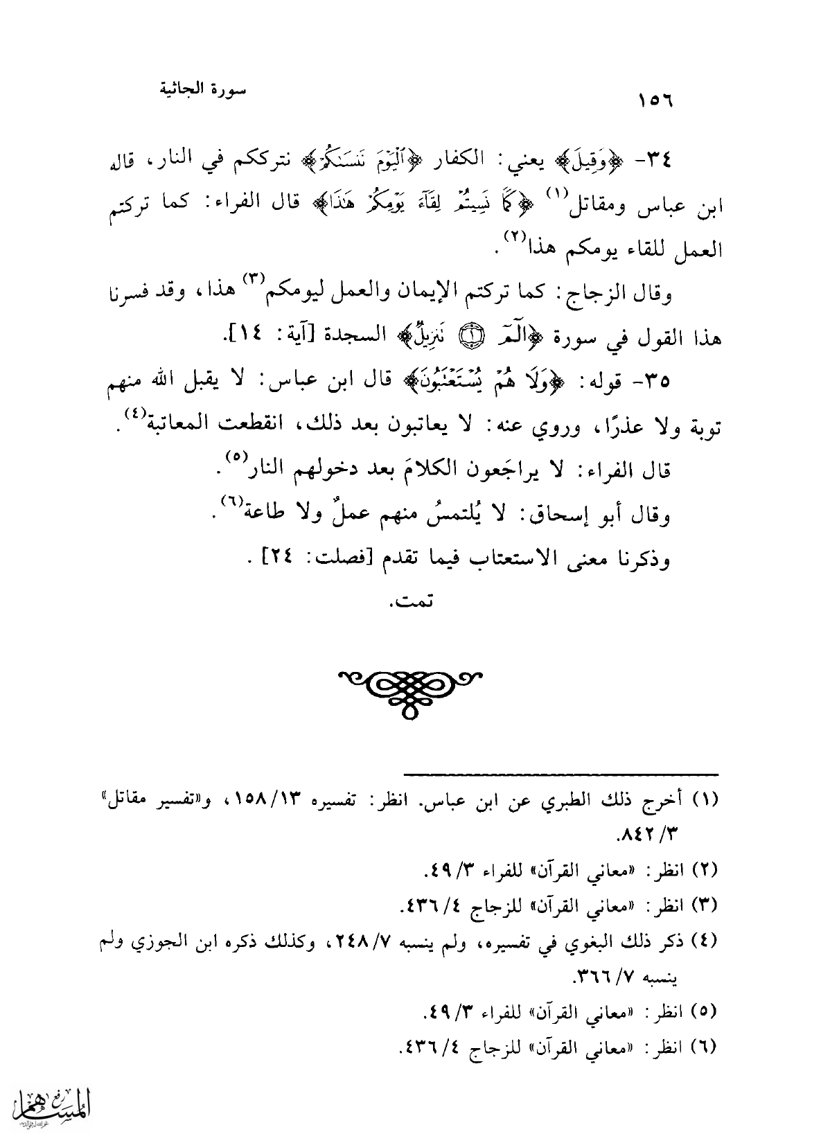 (¬5) انظر: "معاني القرآن" للفراء 3/ 49.