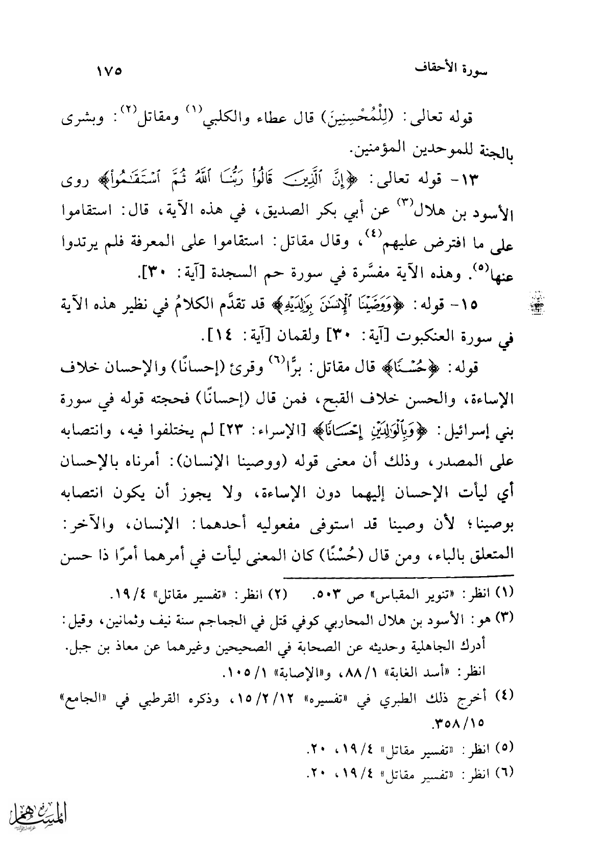 13 - قوله تعالى: {إِنَّ الَّذِينَ قَالُوا رَبُّنَا اللَّهُ ثُمَّ اسْتَقَامُوا} روى الأسود بن هلال (¬3) عن أبي بكر الصديق، في هذه الآية، قال: استقاموا على ما افترض عليهم (¬4)، وقال مقاتل: استقاموا على المعرفة فلم يرتدوا عنها (¬5). وهذه الآية مفسَّرة في سورة حم السجدة [آية: 30].