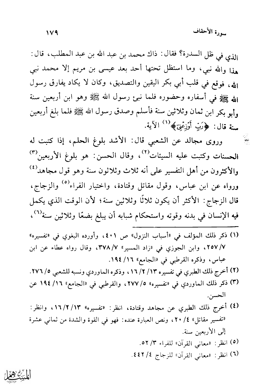 وروى مجالد عن الشعبي قال: الأشد بلوغ الحلم، إذا كتبت له الحسنات وكتبت عليه السيئات (¬2)، وقال الحسن: هو بلوغ الأربعين (¬3) والأكثرون من أهل التفسير على أنه ثلاث وثلاثون سنة وهو قول مجاهد (¬4) ورواه عن ابن عباس، وقول مقاتل وقتادة، واختيار الفراء (¬5) والزجاج، قال الزجاج: الأكثر أن يكون ثلاثًا وثلاثين سنة؛ لأن الوقت الذي يكمل فيه الإنسان في بدنه وقوته واستحكام شبابه أن يبلغ بضعًا وثلاثين سنة (¬6)،