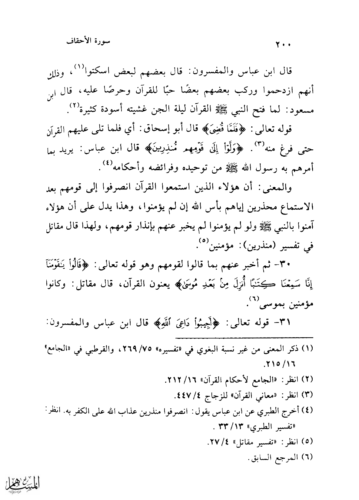 30 - ثم أخبر عنهم بما قالوا لقومهم وهو قوله تعالى: {قَالُوا يَا قَوْمَنَا إِنَّا سَمِعْنَا كِتَابًا أُنْزِلَ مِنْ بَعْدِ مُوسَى} يعنون القرآن، قال مقاتل: وكانوا مؤمنين بموسى (¬6).